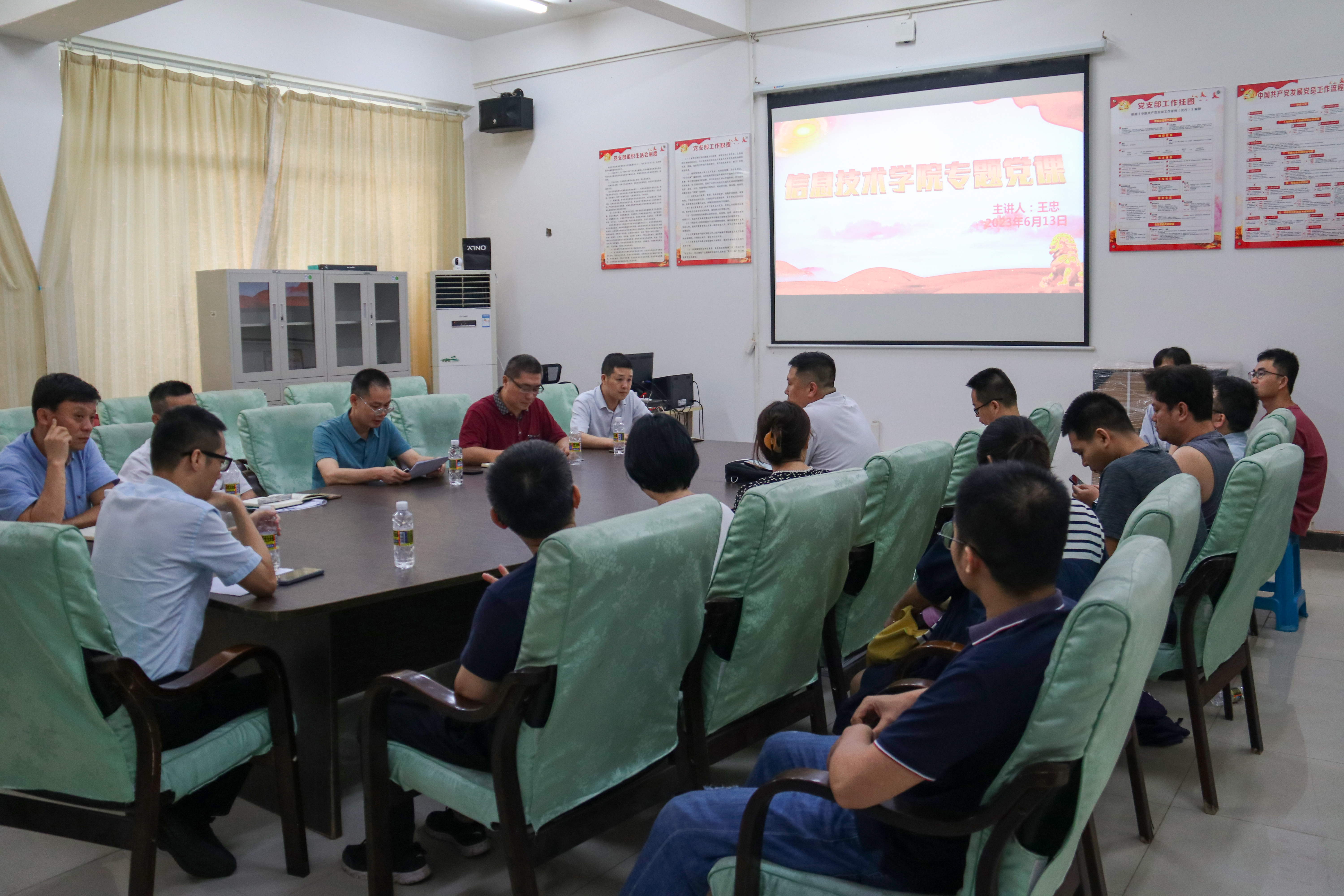 6月13日下午16时,yl1111永利集团经理王忠在4-213会议室以《习近平关于职业教育的重要论述》为题,给全院全体师生党员讲授“学习贯彻习近平新时代中国特色社会主义思想”主题教育专题党课。
