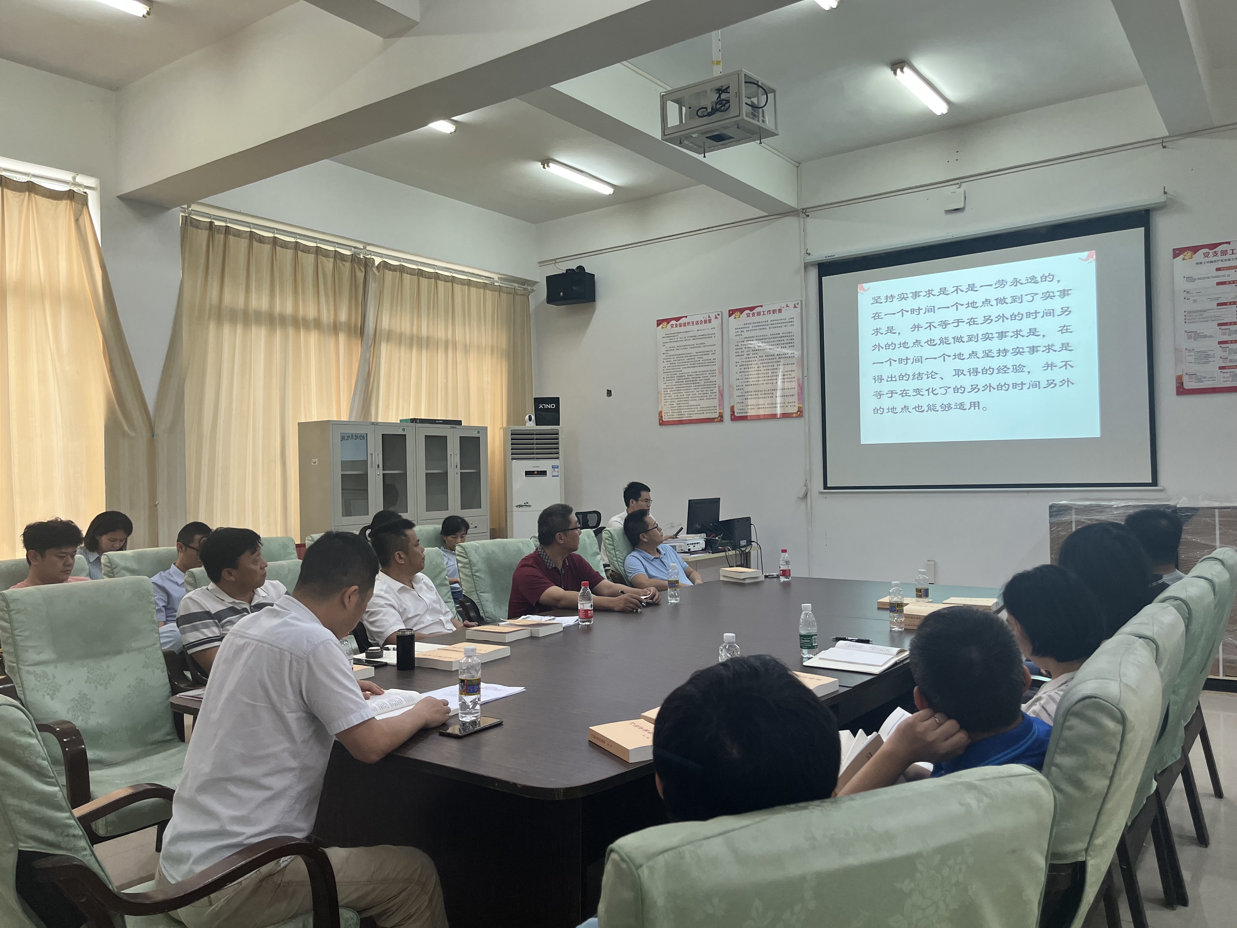 会议其次,党总支副书记黄守官领学读本《习近平新时代中国特色社会主义思想的世界观和方法论专题摘编》之“马克思主义是我们党的灵魂和旗帜”;教工党支部书记康东领学读本《论党的自我革命》之“实事求是是中国共产党人认识世界、改造世界的根本要求”;员工党支部书记代晓明领学读本《习近平关于调查研究论述摘编》之“在全党大兴调查研究之风”。