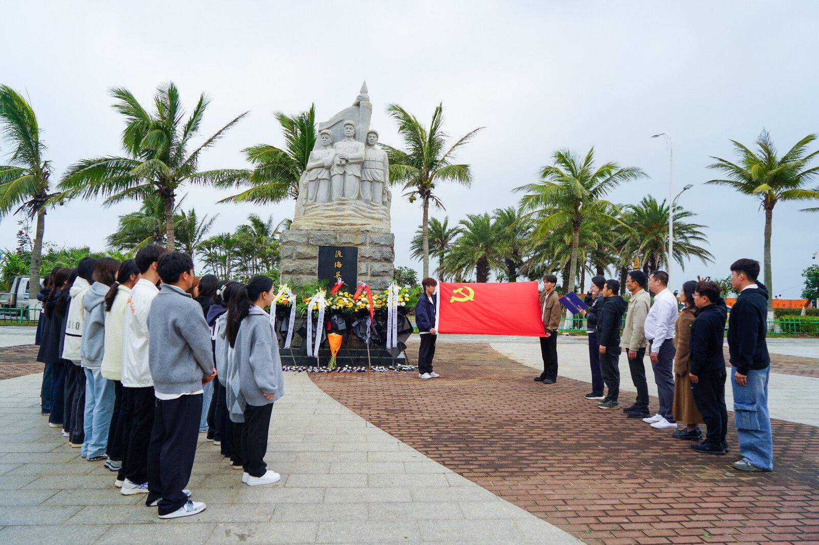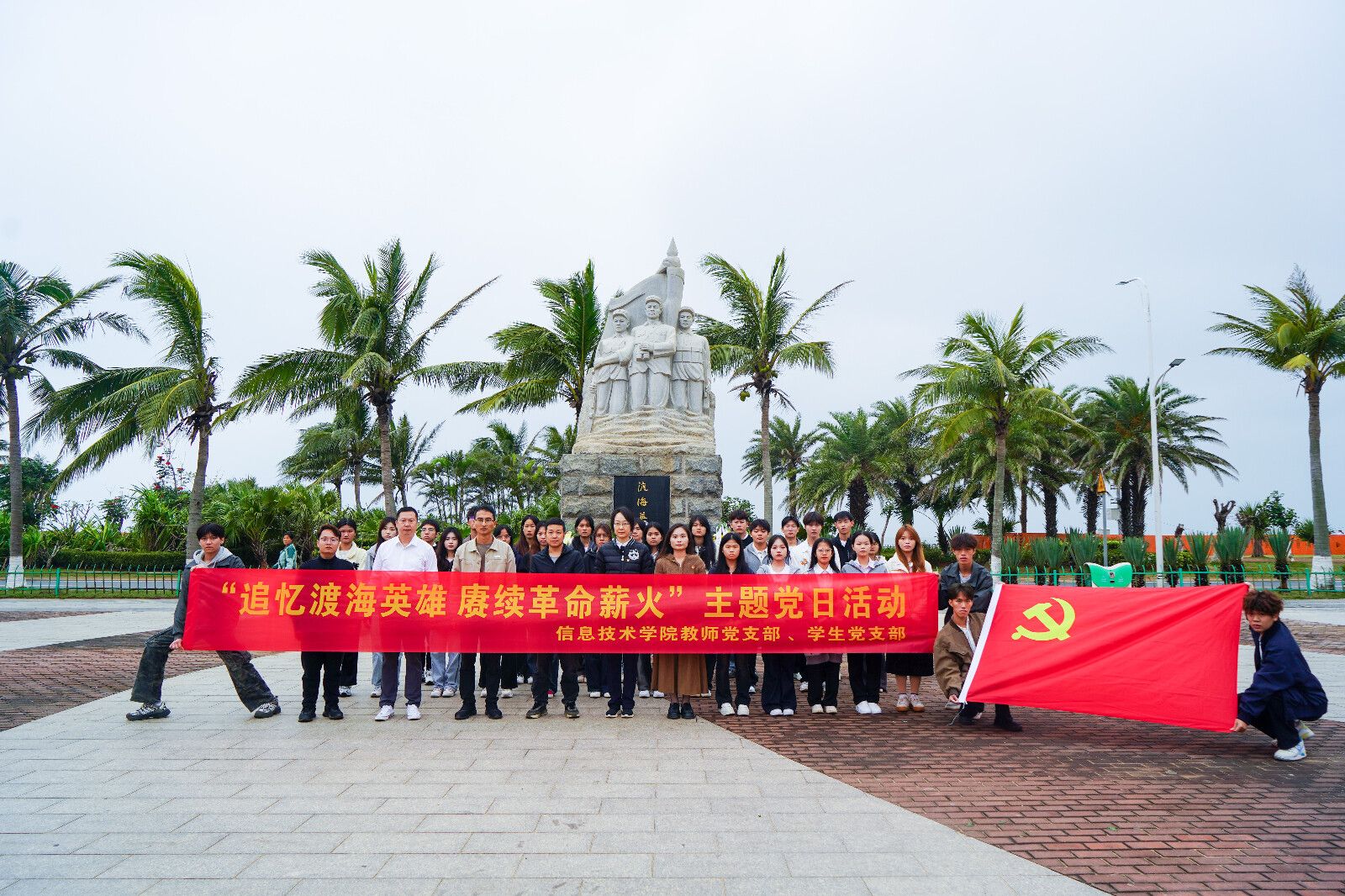 为弘扬革命精神,传承红色基因,扎实开展深入贯彻中央八项规定精神学习教育,2025年4月1日下午,公司教师党支部与员工党支部在白沙门渡海作战纪念广场联合开展了“追忆渡海英雄,赓续革命薪火”主题党日活动。本次活动由邱叶同学主持,教师党支部书记康东老师、员工党支部书记代晓明老师,教师党支部委员王天明老师、靳向峰老师、员工党支部委员蔡守正老师、符传栋老师、员工党员、入党积极分子以及团学干部共同参与。