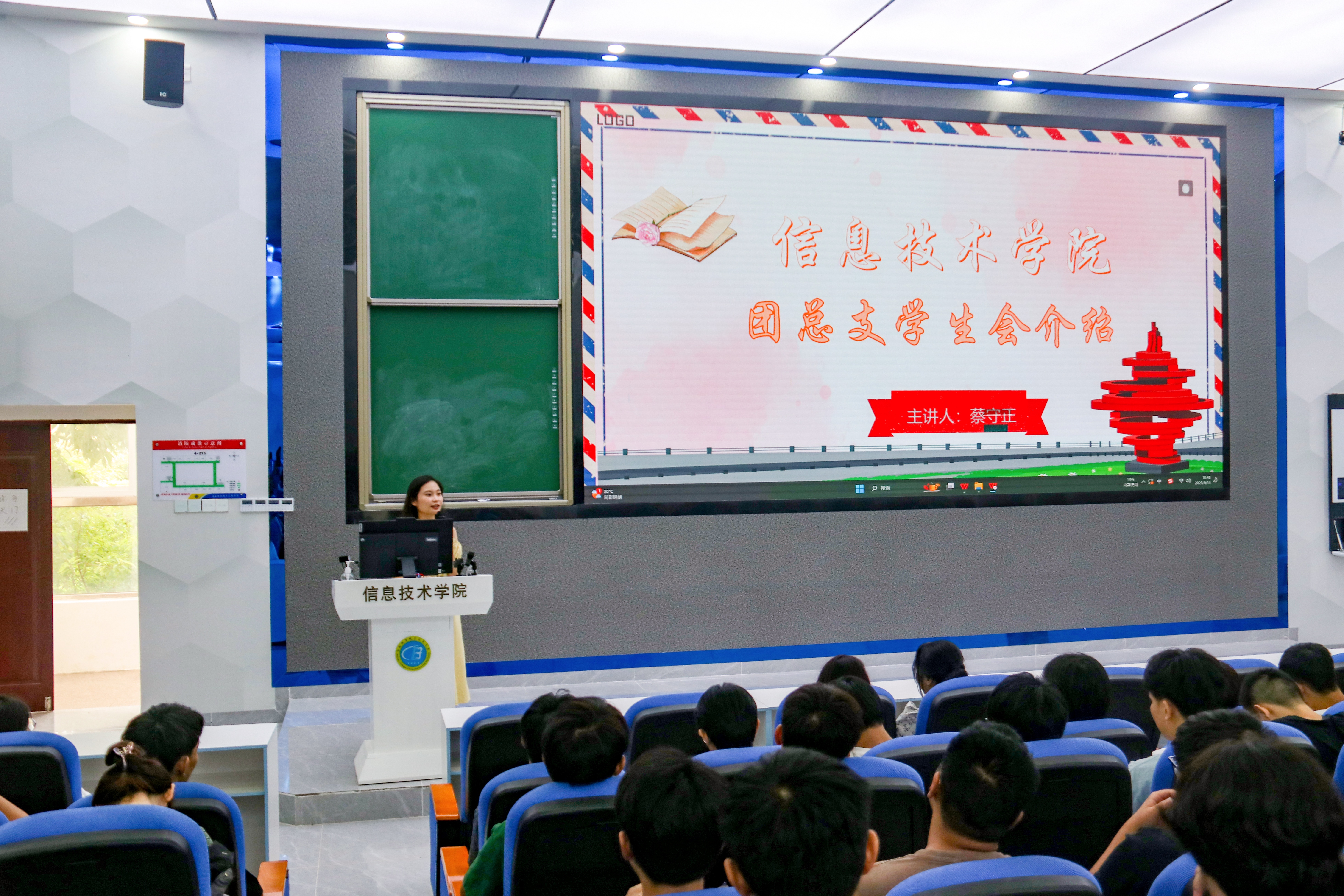 会议伊始,代老师从职能部门介绍、班主任介绍、辅导员介绍、请假流程、军训要求、班委竞选、综合素质测评、入党流程介绍八个方面依次进行讲解,鼓励大家要严格要求自己,提高政治意识,端正入党动机,积极向党组织靠拢。