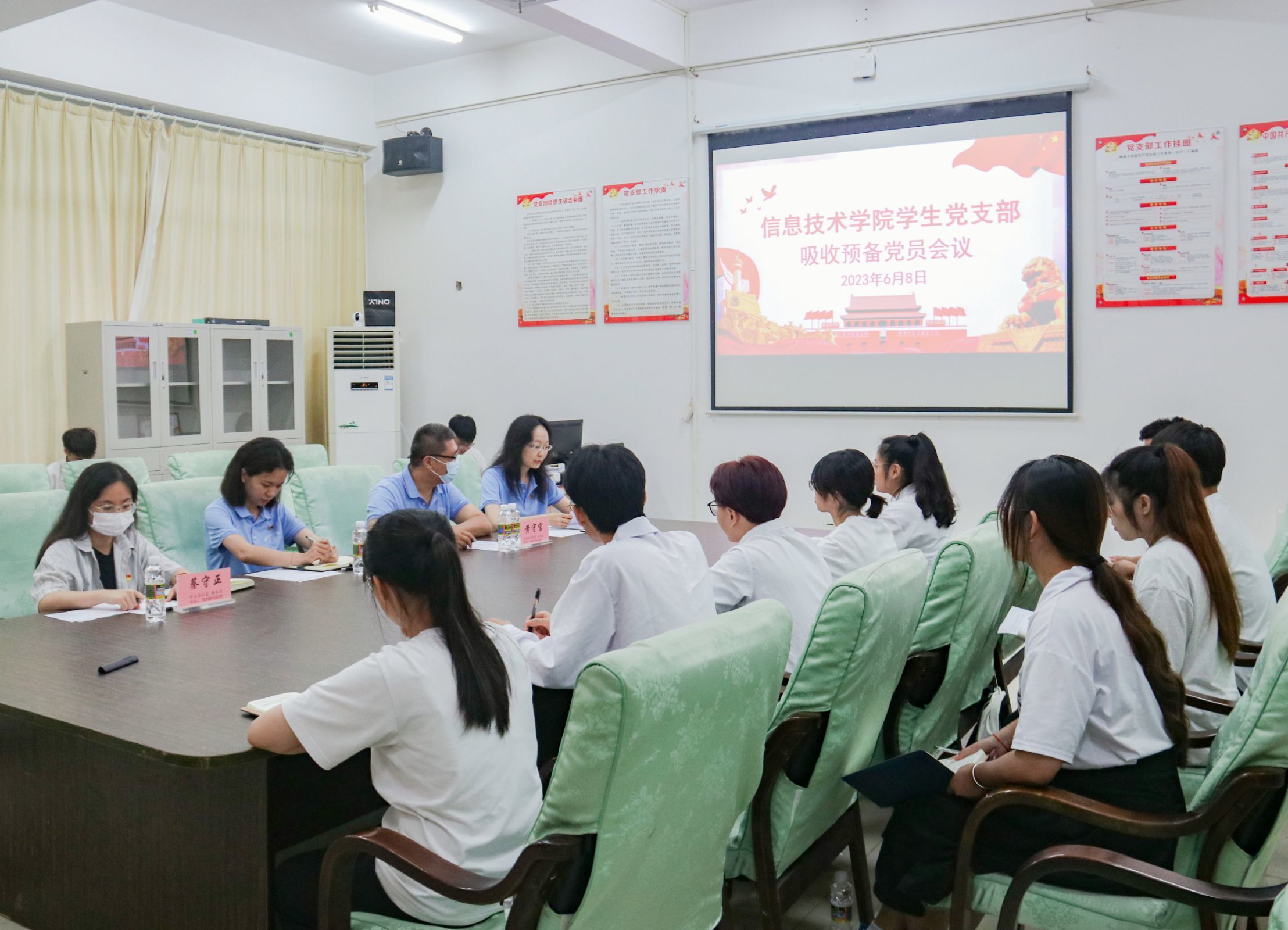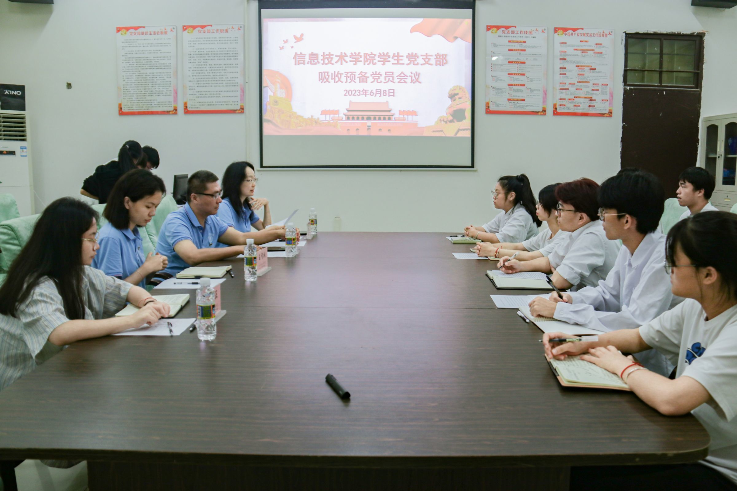 根据员工党支部发展党员工作计划,讨论发展对象符传品等9名同志入党问题,yl1111永利集团员工党支部于6月8日在4-213召开吸收预备党员会议,参加本次会议的有公司党总支副书记黄守官、员工党支部书记代晓明老师、支部委员唐图、蔡守正,支部党员王智娴、吴淑亲以及21级发展对象。