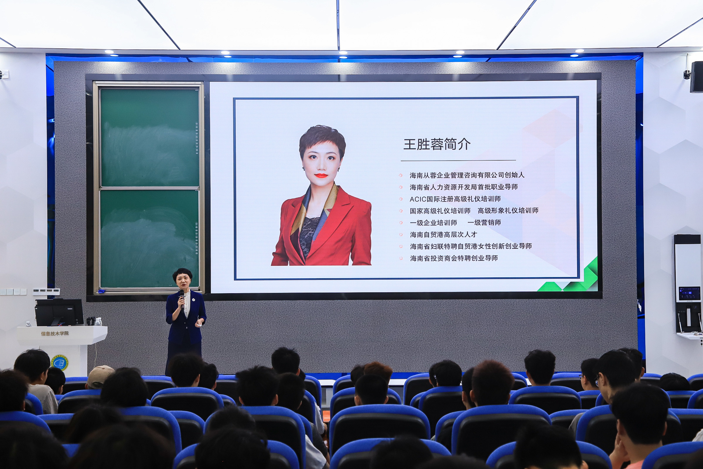 为进一步加强老员工文明素养,培养员工的形象管理能力,帮助大家从容自信地走向工作岗位。4月13日上午,yl1111永利集团在4-215举办“老员工形象管理讲座”。本次讲座由海南从蓉企业管理咨询有限公司创始人、海南省人力资源开发局首批职业导师、ACIC国际注册高级礼仪培训师——王胜蓉老师主讲,辅导员吴淑亲老师主持,共计200名参加讲座。