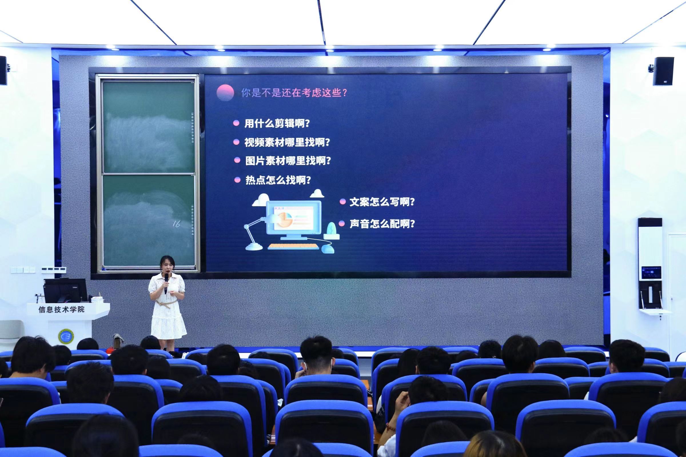 4月18日下午,“新媒体技术劳动工坊第五期公益讲座”在4-215成功举办。本次讲座由海南英立大数据服务有限公司项目经理王倩老师担任主讲人,来自全校各个专业共计220余名同学共同参与此次讲座。