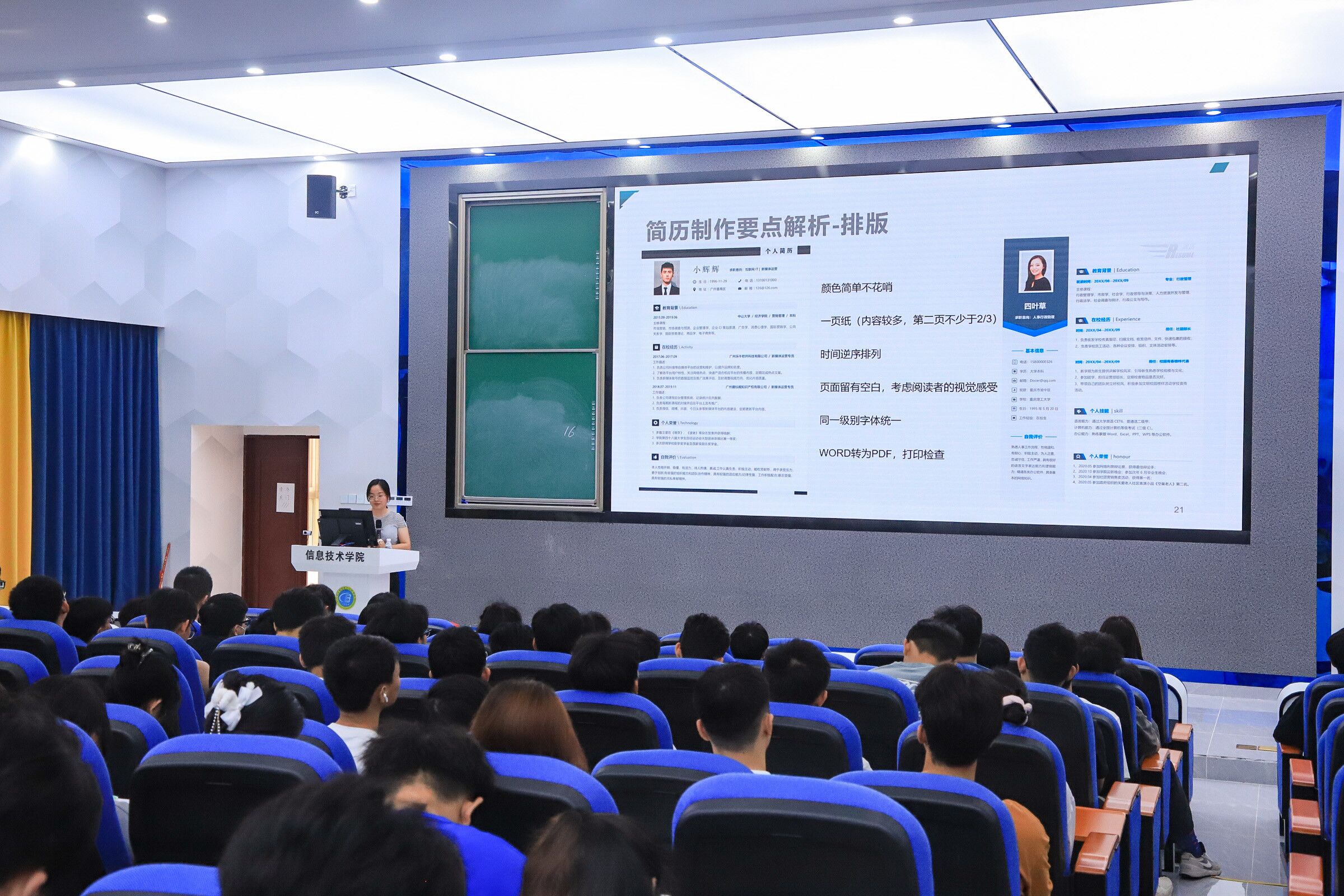 本次讲座有利于帮助同学们自觉、自主的做好职业预备,增强发展的目的性与计划性,有效为同学们制作实习就业简历指点迷津,使同学们受益匪浅。祝愿同学们都能制作出一份必胜的简历,“职”等你来!