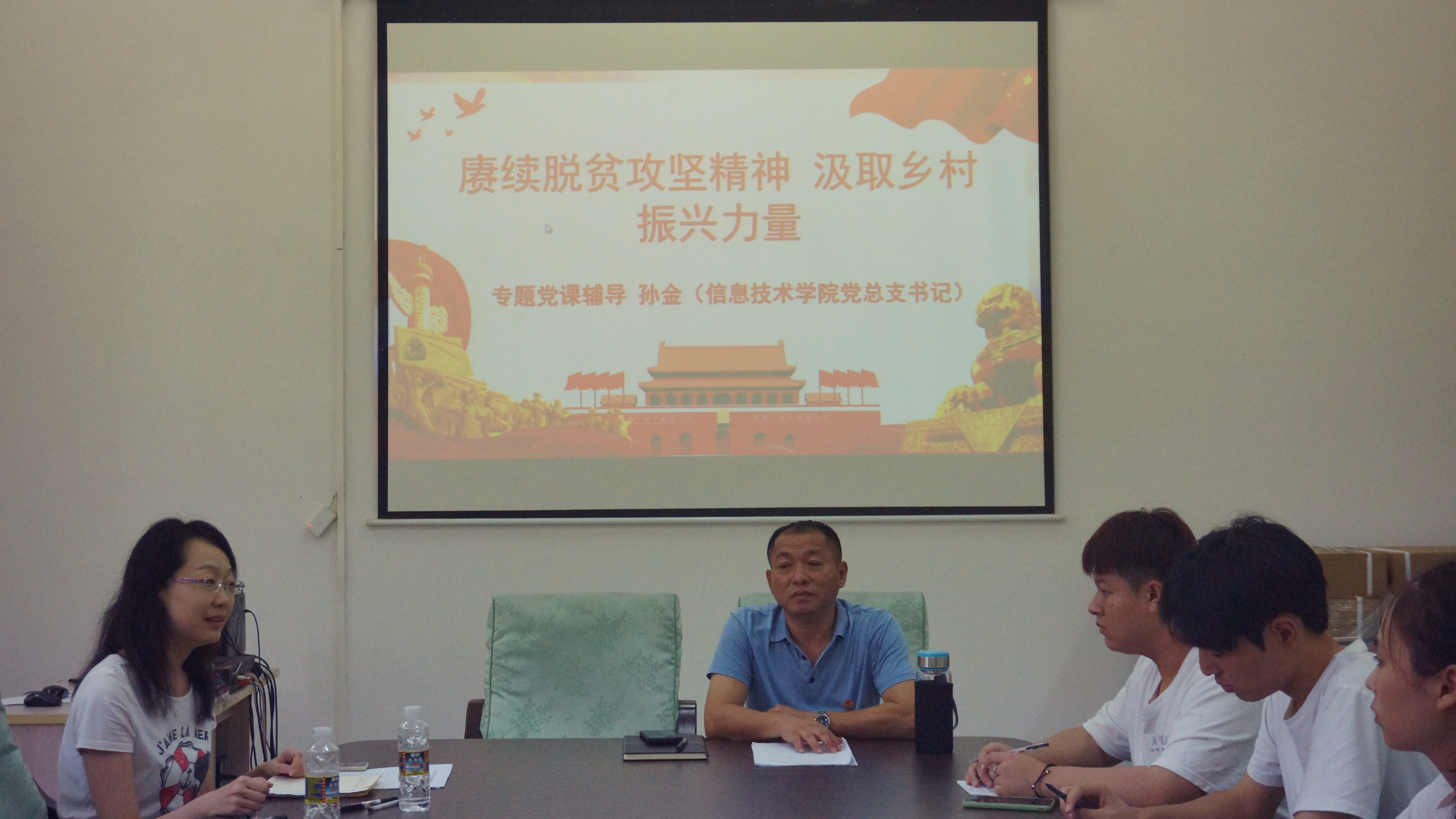 按照学习流程,首先由党总支书记孙金上党课。孙书记与与会人员分享他的脱贫攻坚、乡村振兴工作经历。从乡村振兴战略提出背景及脱贫攻坚取得的成效逐项进行解读,并就乡村振兴总体要求二十字“产业兴旺、生态宜居、乡风文明、治理有效、生活富裕”几大模块,向预备党员们讲述每个模块的规划、目标以及目前所作出的成就。最后他向员工预备党员们提议:“农村是一片广阔的天地,有条件的同学,应该回到乡村去,为发展美丽乡村贡献应有力量!”。