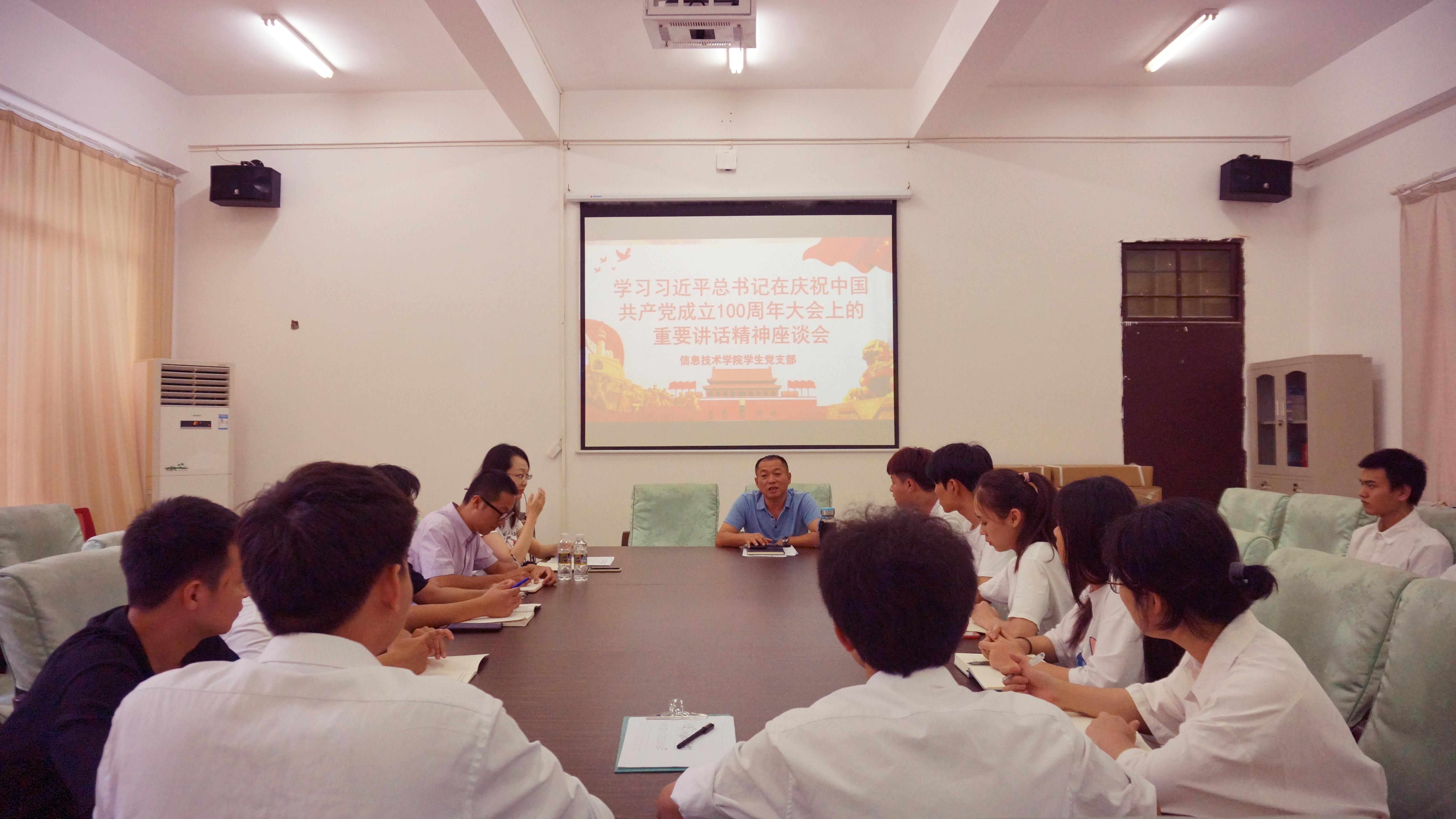 为学习习近平总书记在党的100周年大会上的重要讲话精神,贯彻爱国爱党的精神理念,yl1111永利集团员工党支部于2021年7月1日在2-213召开学习座谈会。党总支书记孙金同志、党总支副书记麦锐同志、员工党支部书记代晓明同志、学工办主任梁其钰同志和全体员工预备党员参与此次会议。会议由代晓明同志主持。