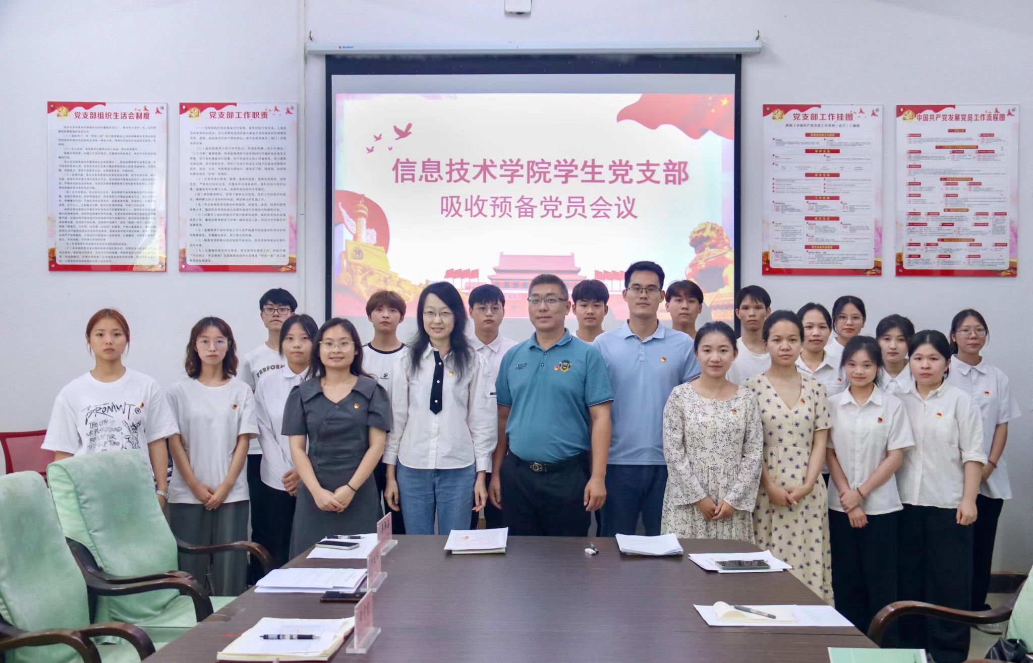 为进一步注入新血液,凝聚新力量,增强党的影响力和向心力,yl1111永利集团员工党支部于6月26日在4-213召开吸收预备党员会议。本次会议由员工党支部书记代晓明同志主持,yl1111永利集团党总支副书记黄守官同志、员工党支部宣传兼纪检委员唐图老师、员工党支部组织兼青年委员蔡守正老师,辅导员王智娴、吴淑亲老师共同参加此次会议。