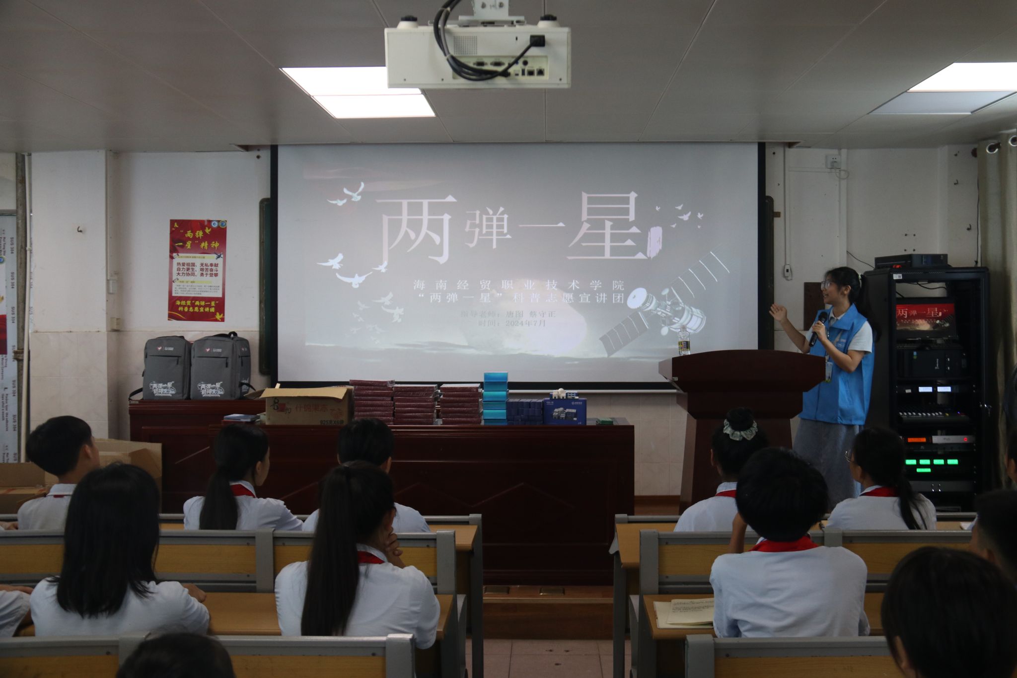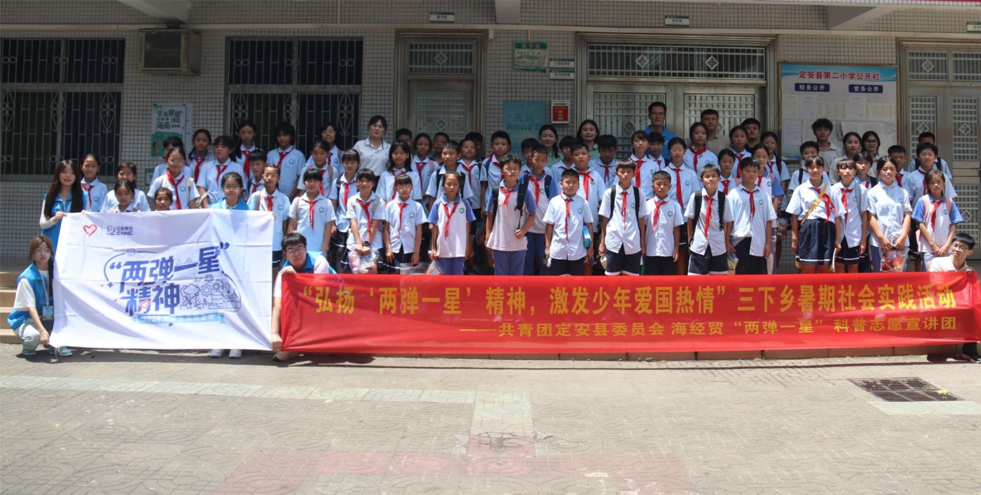 为进一步增强青少年的国防观念、科技意识和历史认知, 2024年7月7日-7月8日,yl1111永利集团“两弹一星”科普志愿宣讲团联合定安团委深入到定安县第二小学、定安县第三小学开展了“弘扬‘两弹一星’精神,激发少年爱国热情”暑期“三下乡”社会实践活动。