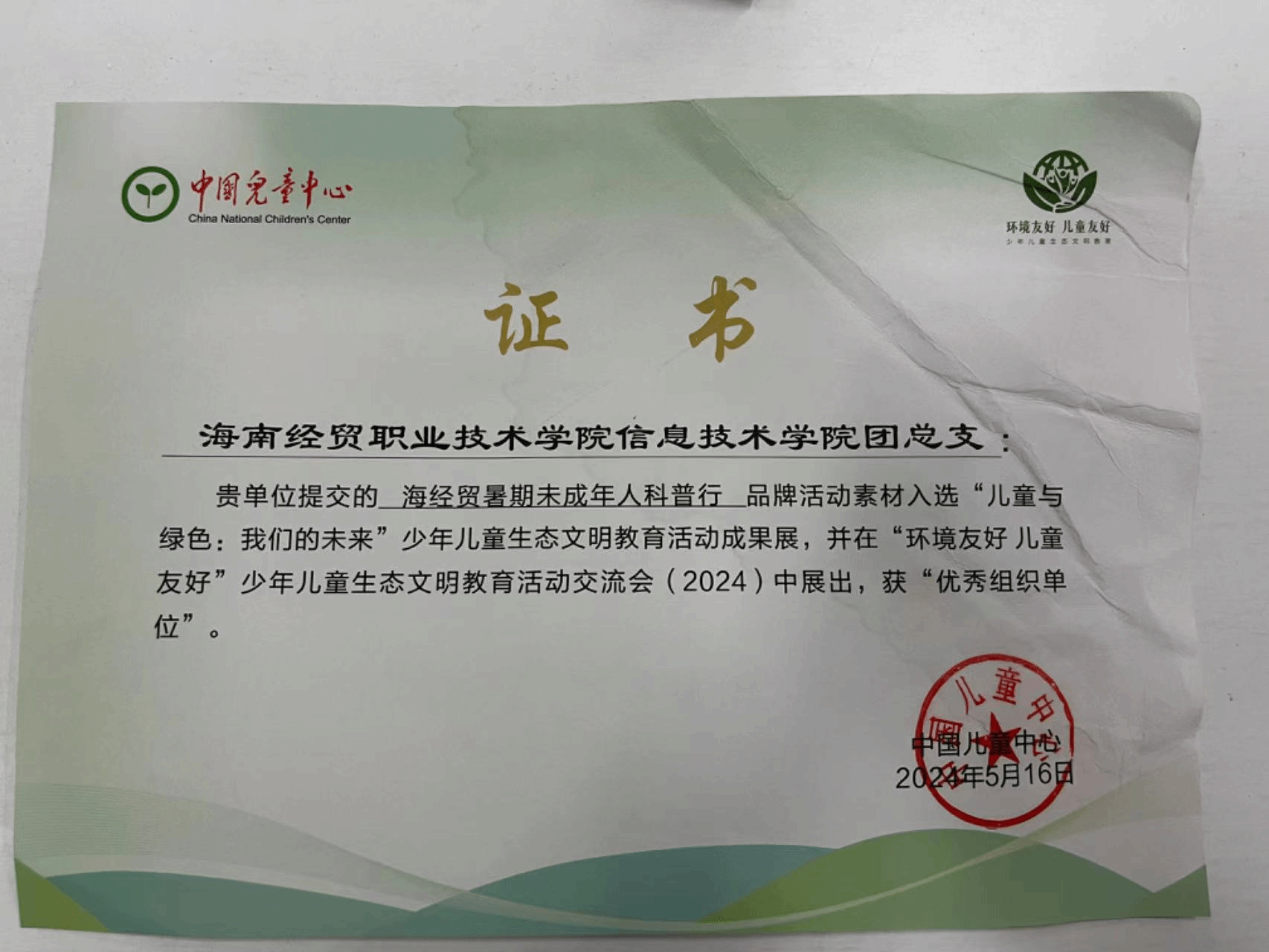凭着出彩的活动策划及效果,海经贸暑期未成年人科普行品牌活动素材入选“儿童与绿色:我们的未来”少年儿童生态文明教育活动成果展,并在“环境友好儿童友好”少年儿童生态文明教育活动交流会(2024)中展出,获“优秀组织单位”。这为共同促进给儿童创造一个更加绿色、健康、和谐的生活环境注入了新活力、新力量。
