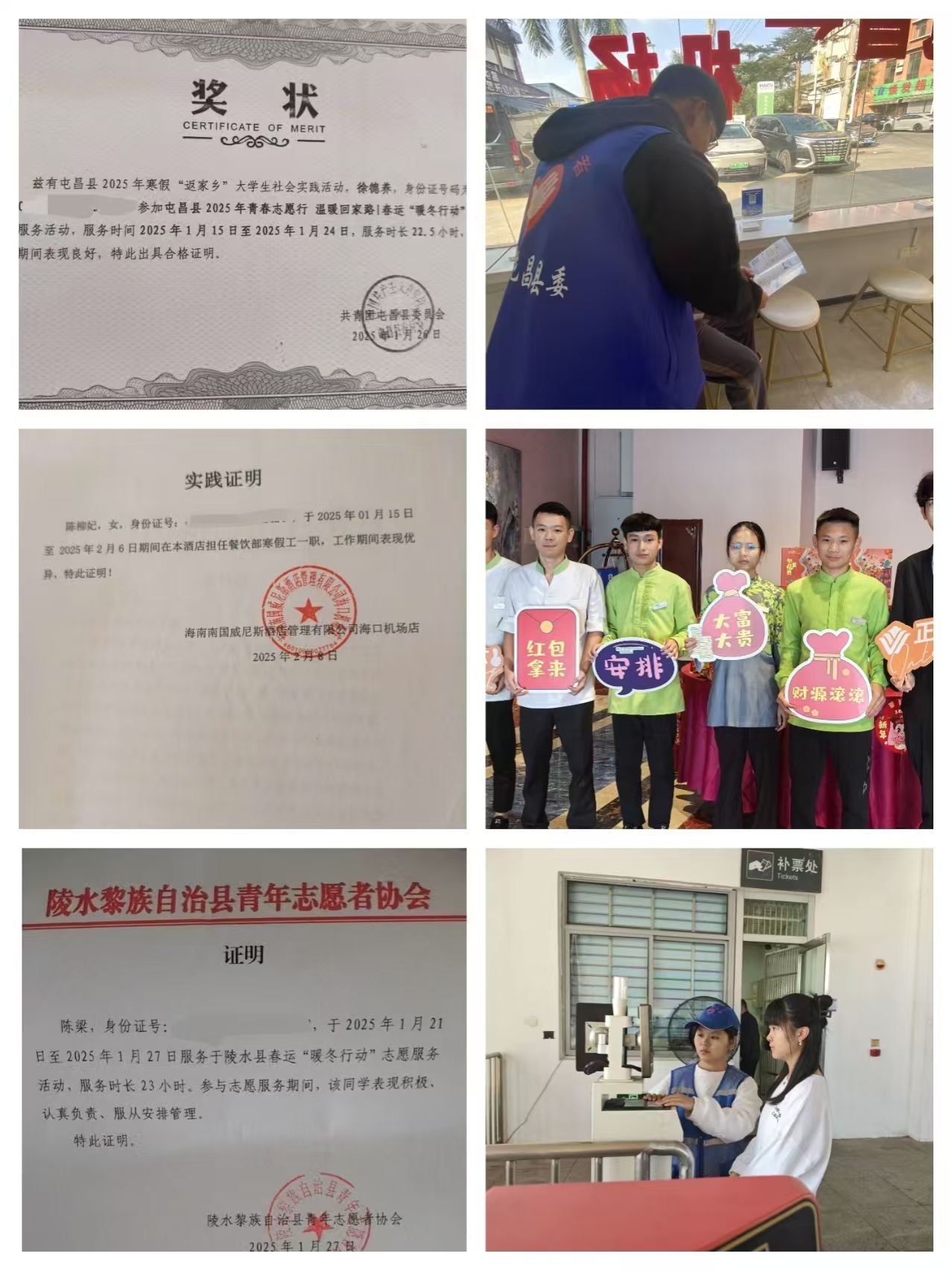 24软件1班陈柳妃同学在海南南国威尼斯酒店管理有限公司海口机场店餐饮部进行了寒假社会实践。实践期间,陈柳妃深刻体会到服务行业的细致与不易:“在餐饮服务中,我学会了如何通过细心观察和耐心沟通来理解顾客需求,把每一件看似简单的小事做到尽善尽美。”她提到,这次实践让她对“为人民服务”有了更深的理解,正如雷锋同志所说:“要把有限的生命投入到无限的为人民服务之中去。