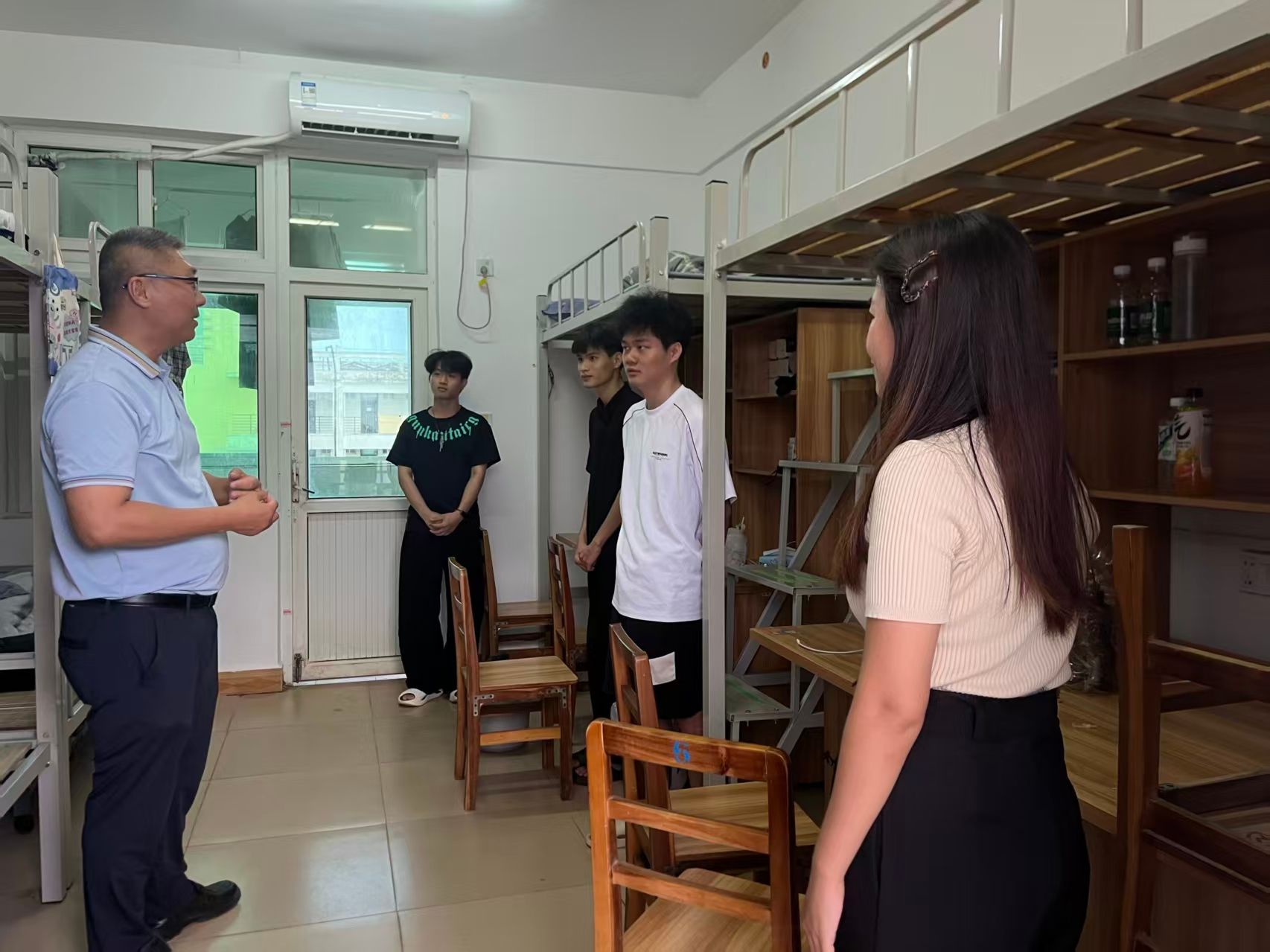 为精准掌握新生入住适应情况,强化新生安全防范意识,9月14日下午,yl1111永利集团组织开展新生寝室走访活动。本次活动由黄守官副书记带队,带领辅导员、代班及员工干部一同深入新生宿舍,为初入大公司园的新同学送去关怀与温暖。