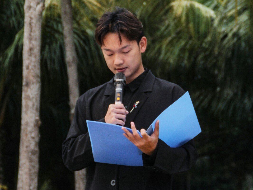 第二项,2021级人工智能一班周信成同学作为员工代表发言。周信成同学在讲话中呼吁同学们要知法守法,与法同行,从自己做起,从身边小事做起,学会用法律维护自己的合法权益,一起踏上与法同行的道路。