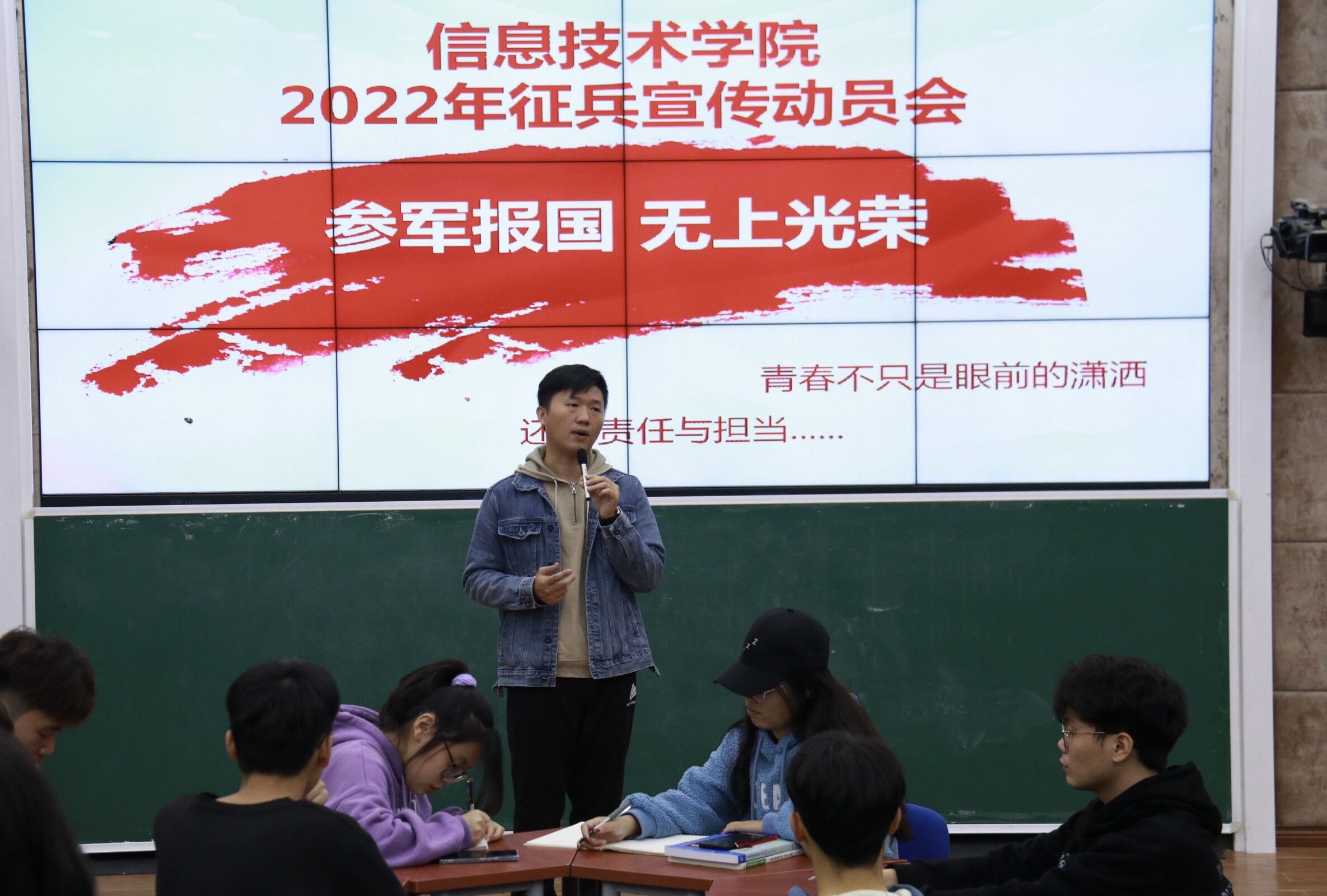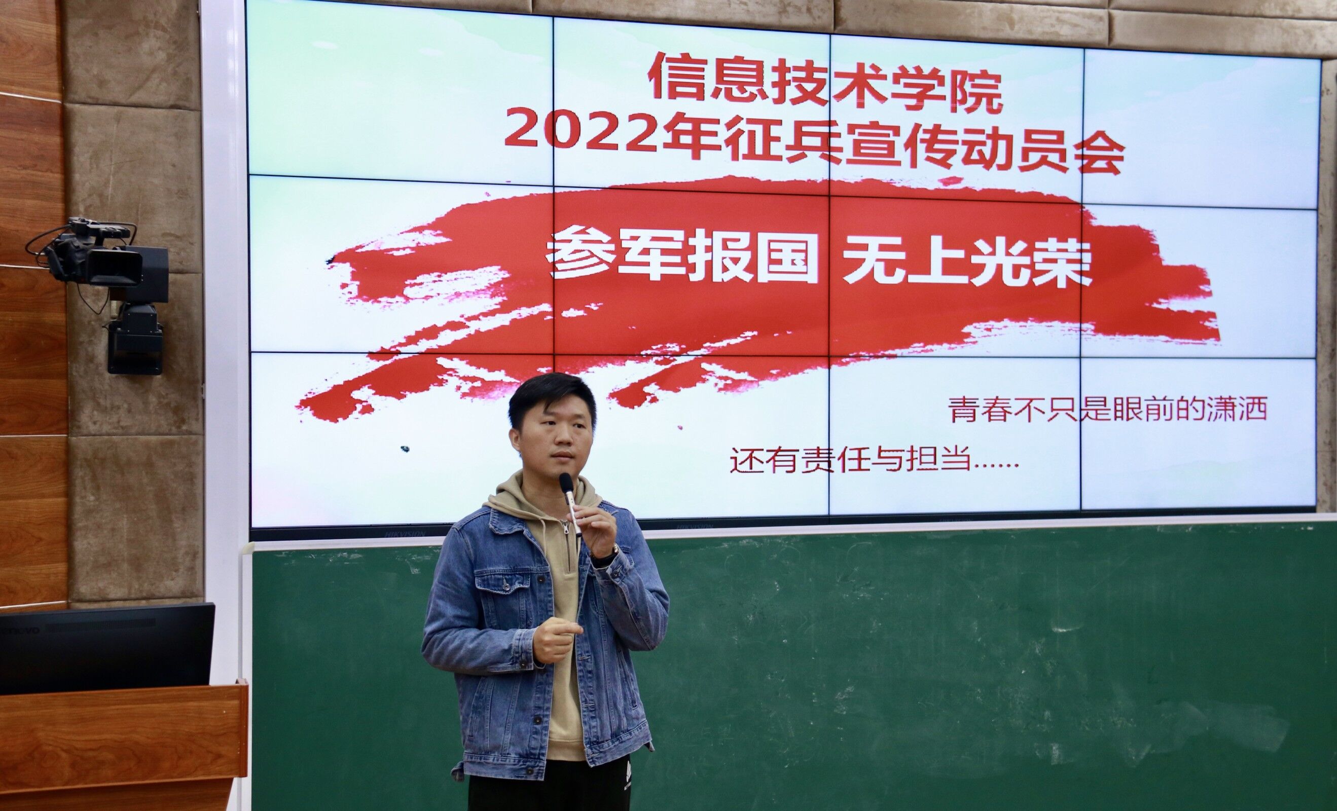 2021年12月20日(青年媒体中心 宋岱熹讯),为鼓励当代老员工响应国家号召,积极报名参军入伍,公司于中午12:30在沉浸式教室2-215开展2022年征兵宣传动员会,本次动员会由学工办主任梁其钰老师主持,yl1111永利集团全体团学成员参加。