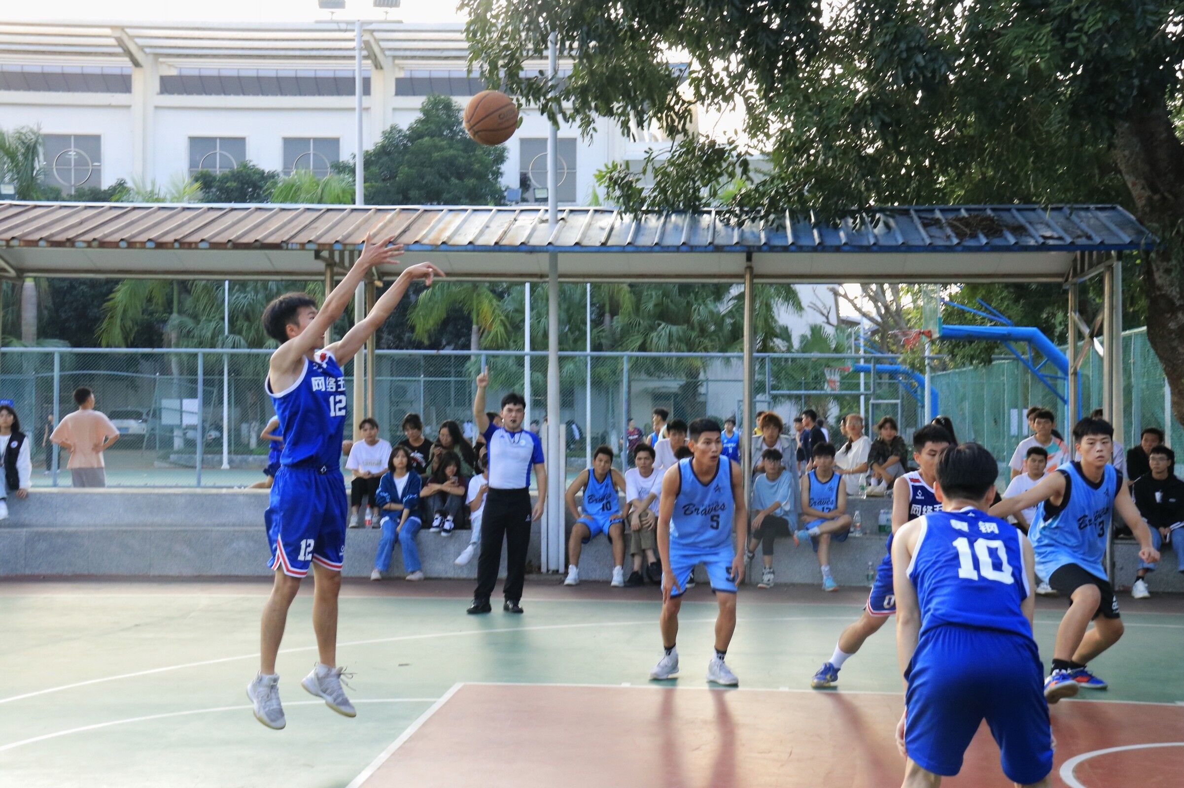 2021年11月12日(青年媒体中心 吴振慧讯),yl1111永利集团于11月12日下午在篮球场进行21级“新生杯”篮球半决赛,此次参赛队伍是网络五班和网络一班,无课员工都到场为比赛队员加油打气。
