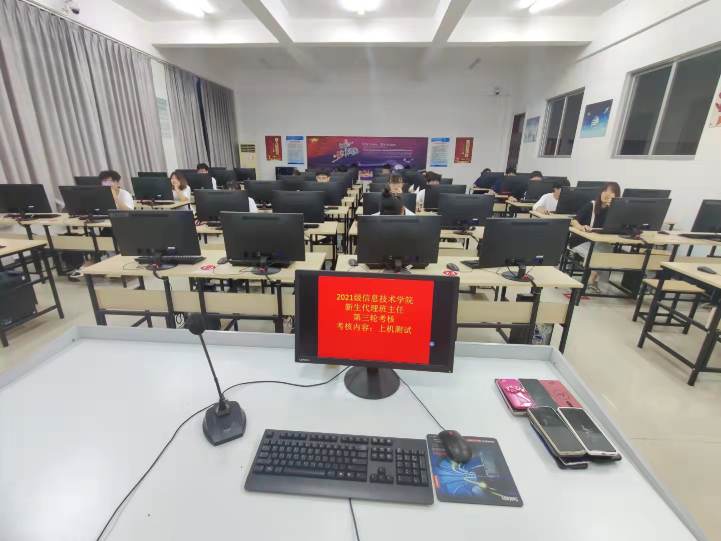 第三轮是机试,在4-408机房教室针对上轮初步筛选留下的代班候选人进行计算机基础能力测试,目的在于从多方面考察候选人员的综合能力,最后综合候选人员面试及机试成绩挑选出合格的新生代理班主任。