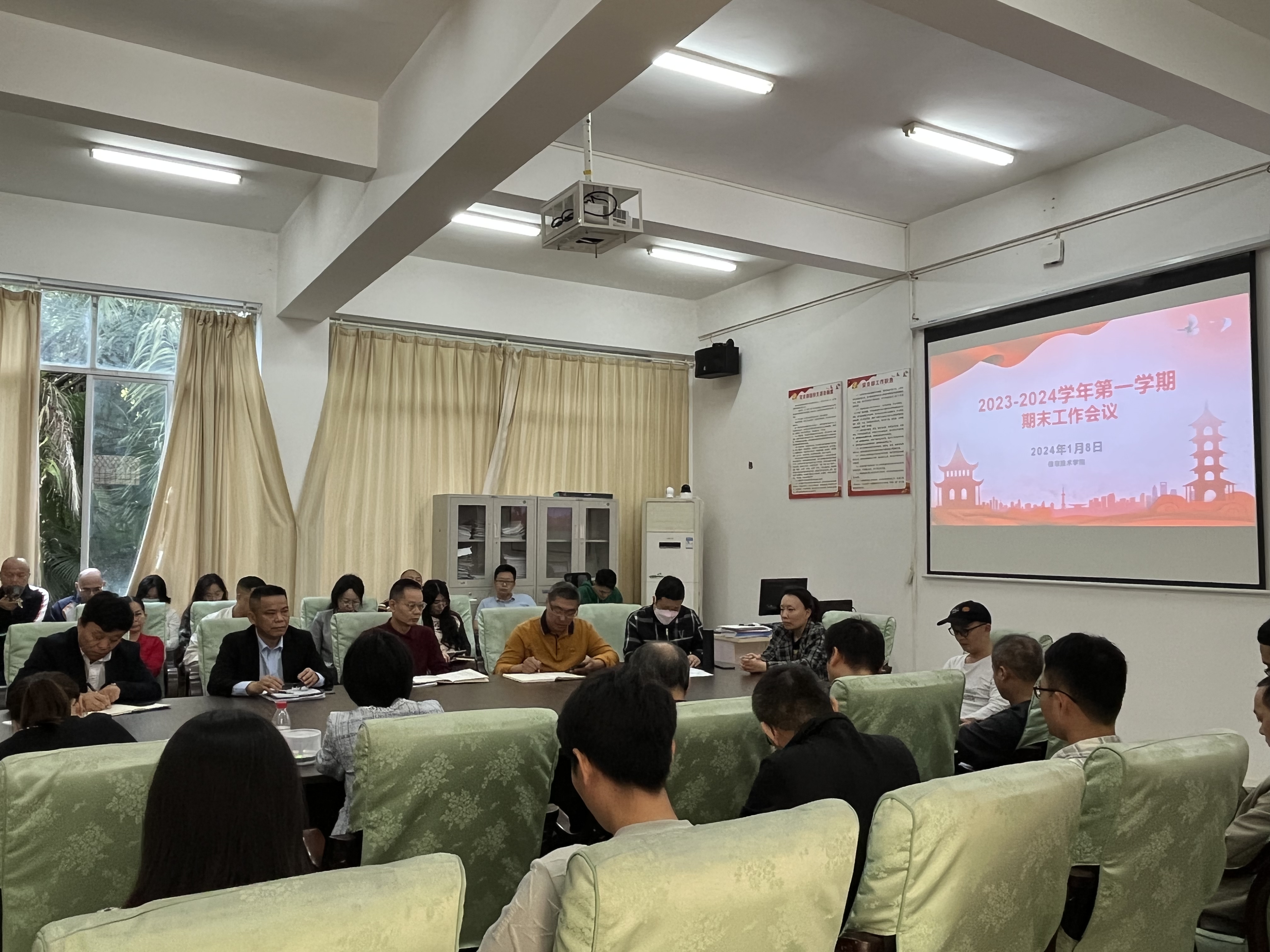 2024年1月8日下午,yl1111永利集团在4-213会议室召开2023-2024学年第一学期期末工作会议,会议由党总支书记符胜主持,yl1111永利集团党政领导及全体教职工参加。