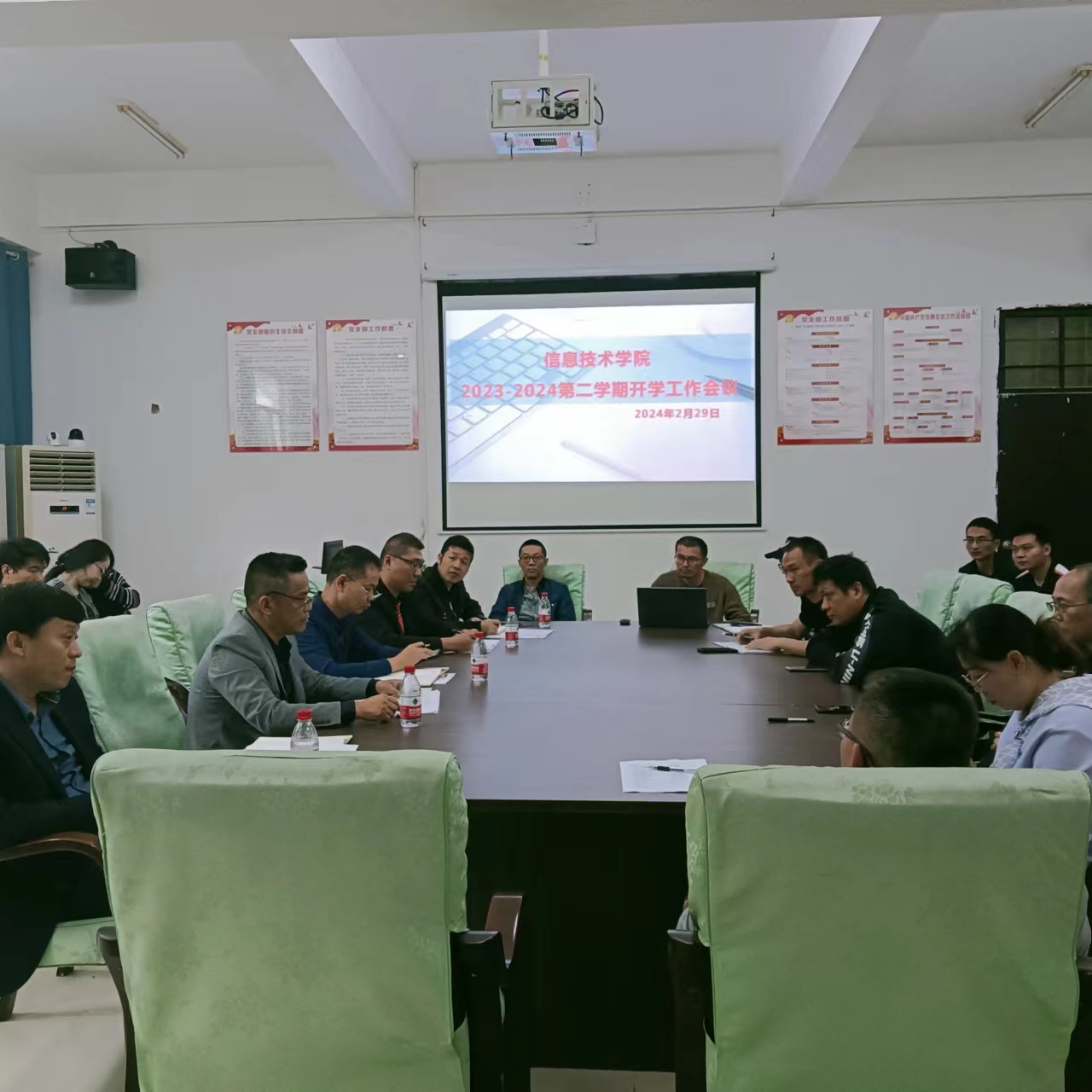 为扎实推进新学期各项工作有序开展,2月29日早上9:00,yl1111永利集团在4-213会议室召开2023-2024学年度第二学期开学工作会议,公司党政班子成员以及全体教职工参加了本次会议。会议由符胜书记主持。