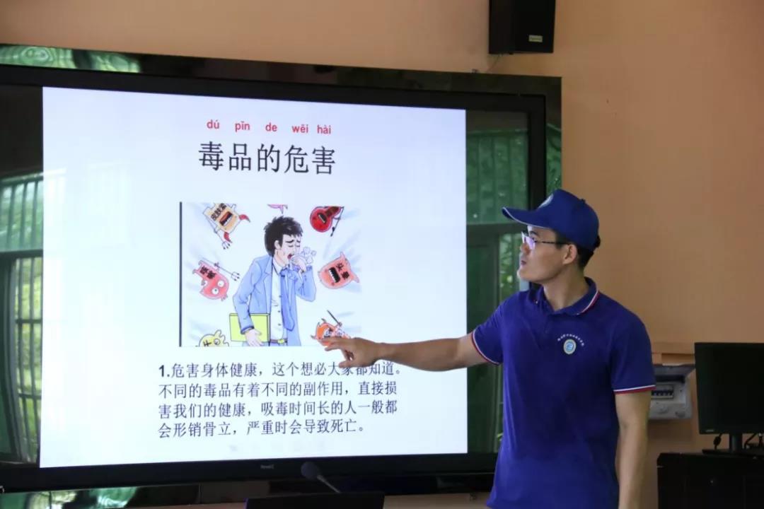 7月7日上午,yl1111永利集团禁毒志愿者们来到禁毒宣讲活动的第二站:水头村的水头小学,当地小员工对毒品知识了解甚少,为了能更好做好此次禁毒宣讲活动,我们yl1111永利集团禁毒志愿者服务队邀请到了公司讲授安全教育课的唐图老师,担任水头小学禁毒主题宣讲的主讲人。