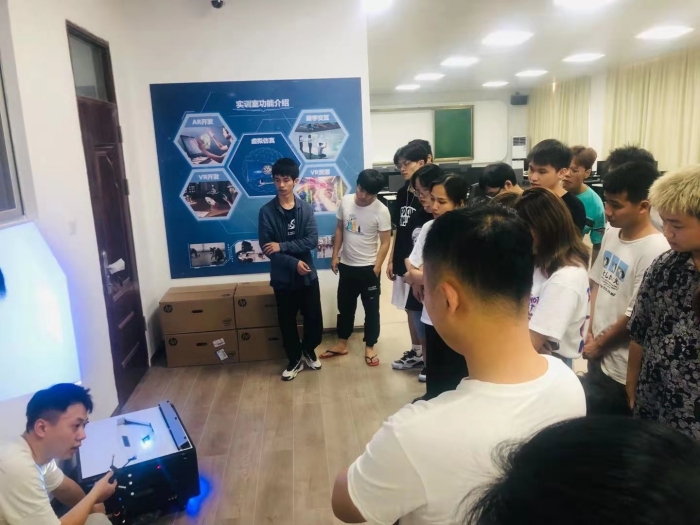 在培训现场师生了解了实训室设备的使用方法,体验了各式虚拟现实虚拟场景。培训现场气氛活跃,达到了预期目的。虚拟现实(VR)实训室的建成对于加强公司信息化教学,提高数字媒体虚拟现实教学水平、提升教学效果具有重要意义。