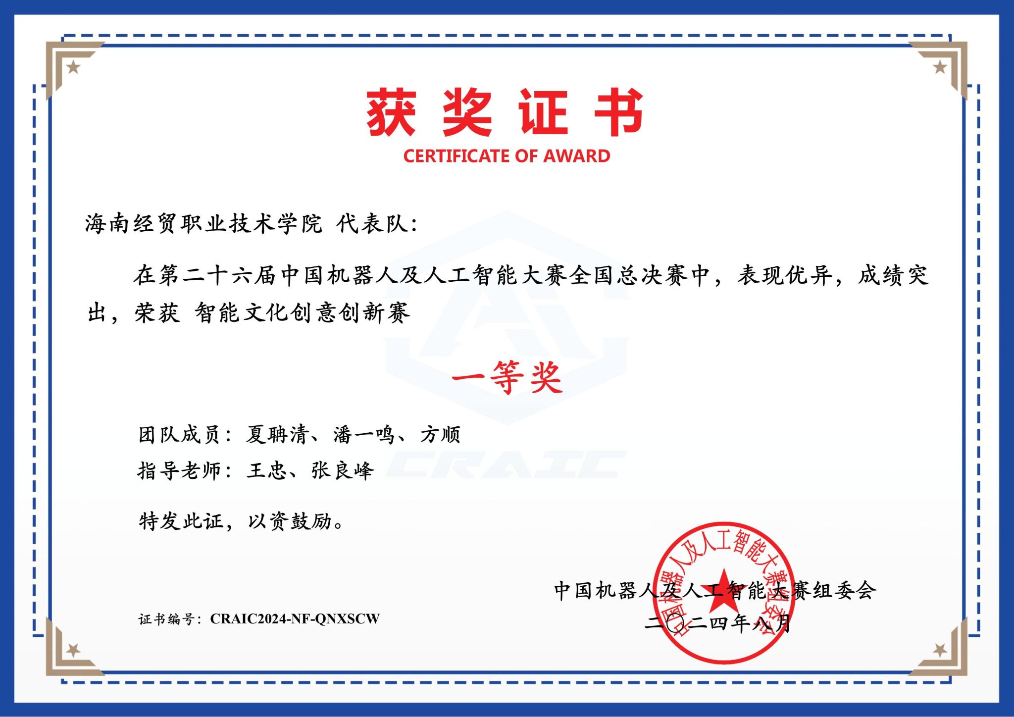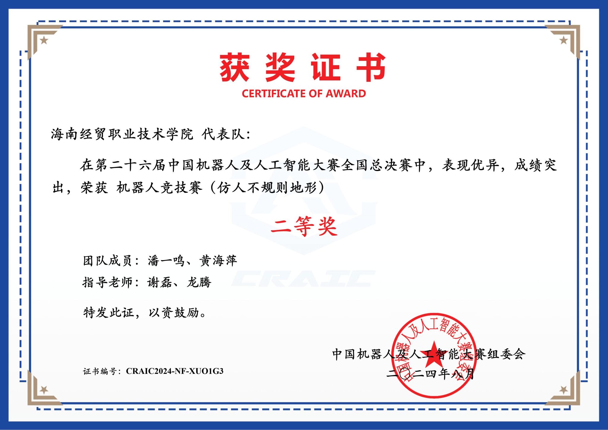 8月25日,第二十六届中国机器人及人工智能大赛全国总决赛顺利结束。yl1111永利集团夏聃清、潘一鸣、方顺同学荣获“智能文化创意创新赛国赛一等奖”(指导教师:王忠、张良峰),潘一鸣、黄海萍同学荣获“机器人竞技赛国赛二等奖”(指导教师:谢磊,龙腾)。