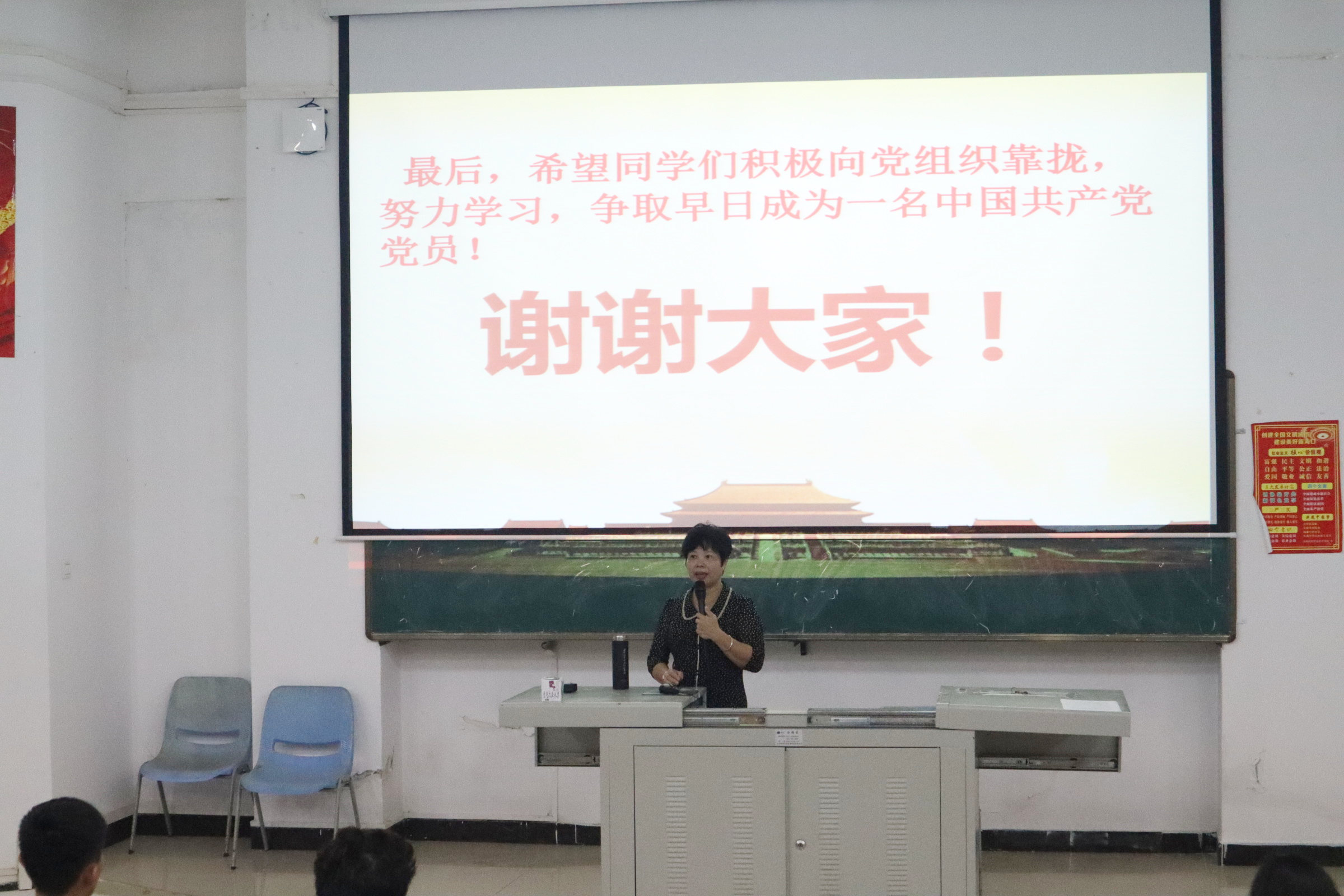 通过黄老师的演讲,让同学们了解了入党的过程,在任何情况下都要“不忘初心,牢记使命”。最后,希望同学们积极向党组织靠拢,努力学习,争取早日成为一名中国共产党党员!