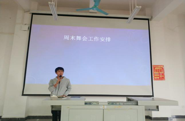 校运会工作总结结束后,副主席邓丕崧针对公司本月即将举办的周末舞会进行工作安排,邓丕崧首先对各部门进行舞会工作的分配及负责区域,最后要求团学青全体成员一定要相互协作,共同把周末舞会举办得更加精彩。