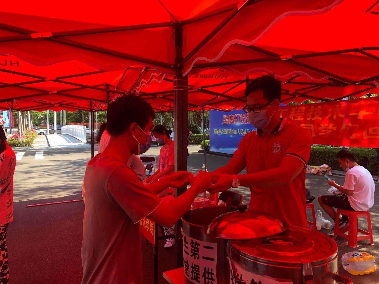 炎热夏日,辅导员给员工志愿者发绿豆水消暑