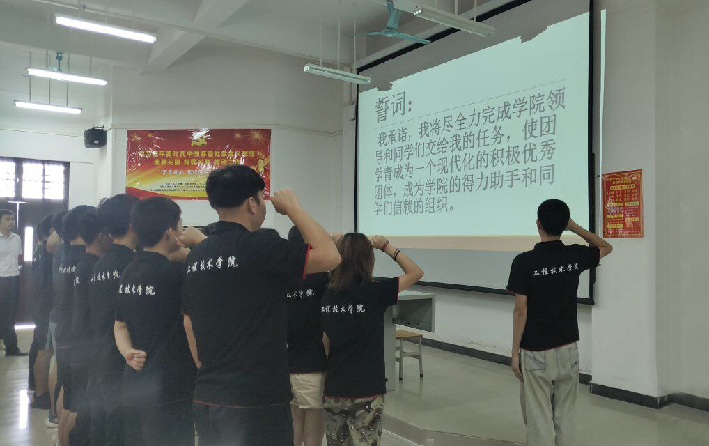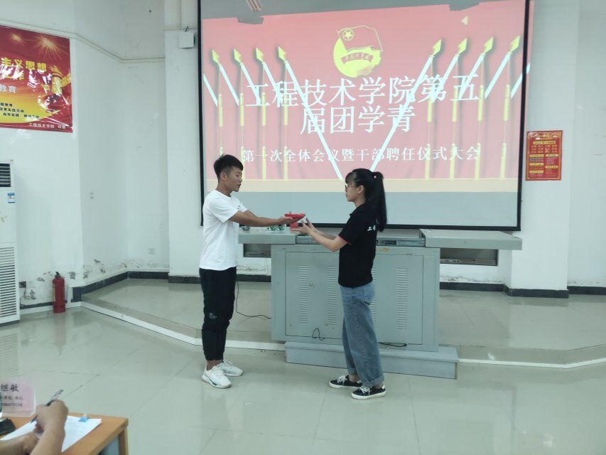 本次大会是由团学青青协会长蔡玉意主持,会议在全体人员起立奉唱中国共青团团歌的氛围中拉开了序幕,紧接着由员工会主席李云飞致辞,对新一届团学青干部的祝贺以及进行授旗仪式。在充满活力的致辞后,由团总支书记周恺老师郑重宣布新一任工程技术公司第五届团学青干部任职名单,并致辞。最后是振奋人心的时刻,在场领导为新一任员工干部颁发聘书环节。紧接着由公司团学青新任主席叶俊男代表发言表示:所有员工干部会尽其员工干部的职责为新老员工服务。随后由党总支书记陈继敏、党总支副书记陈亚芳发表讲话,话中回顾了公司的获奖史,强调了员工干部的重要性,从而希望各员工干部能积极引导其他员工,并丰富校园生活及锻炼各方面能力。大会最后在一片慷慨激昂的宣誓词中落下了帷幕。