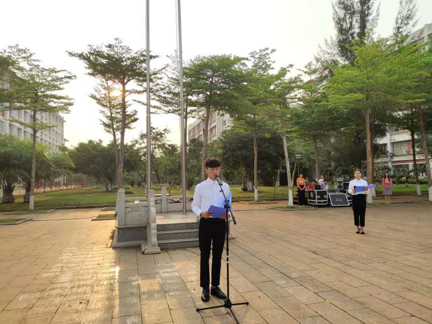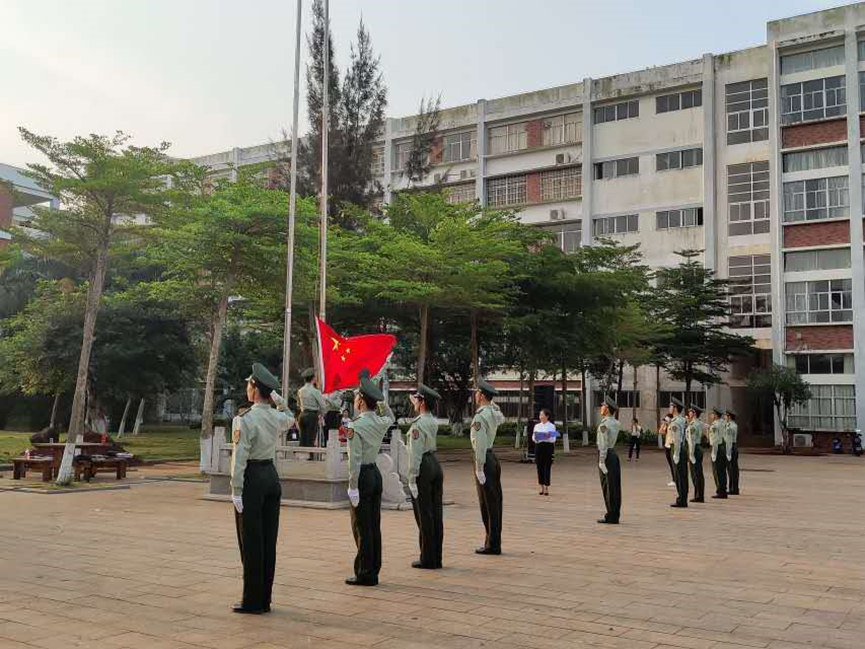 2019年4月8日(青年媒体中心报道 段国帅)讯。为了深入贯彻落实习近平总书记4.13重要讲话精神及李克强总理考察公司时重要讲话精神,鼓励广大青年积极投身海南自由贸易港的建设,进一步弘扬社会主义核心价值观,营造浓厚的爱国主义氛围,全校师生齐聚经贸广场举行了隆重的升旗仪式。
