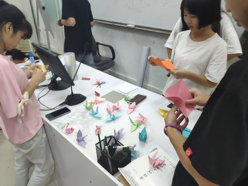 活动通知下发伊始,18计算机网络技术二班的同学们就开始了准备工作:看,他们早早地来到了班级,开始动起双手不停地叠着一只只精美的小纸鹤。就连那些不会叠纸鹤的同学们也参与进来这个“大军”中,他们虚心好学,勇于动手。虽然,第一次的作品不遂人意,但经过他们一次又一次的制作,一个个精美的千纸鹤逐个成型。