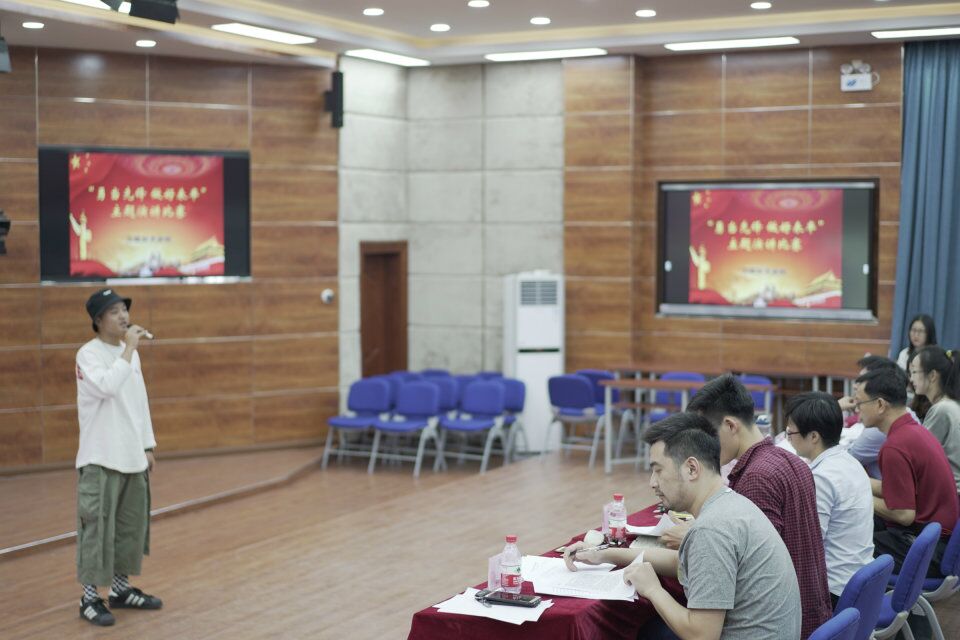 比赛开始,主持人先介绍了比赛规则和比赛过程中需要注意的一些事项以及评分标准。在比赛的过程当中选手们大多数都是看着稿子演讲,虽然个别选手有紧张和卡壳的现象,但他们依然努力的站在台上展现最好的自己。