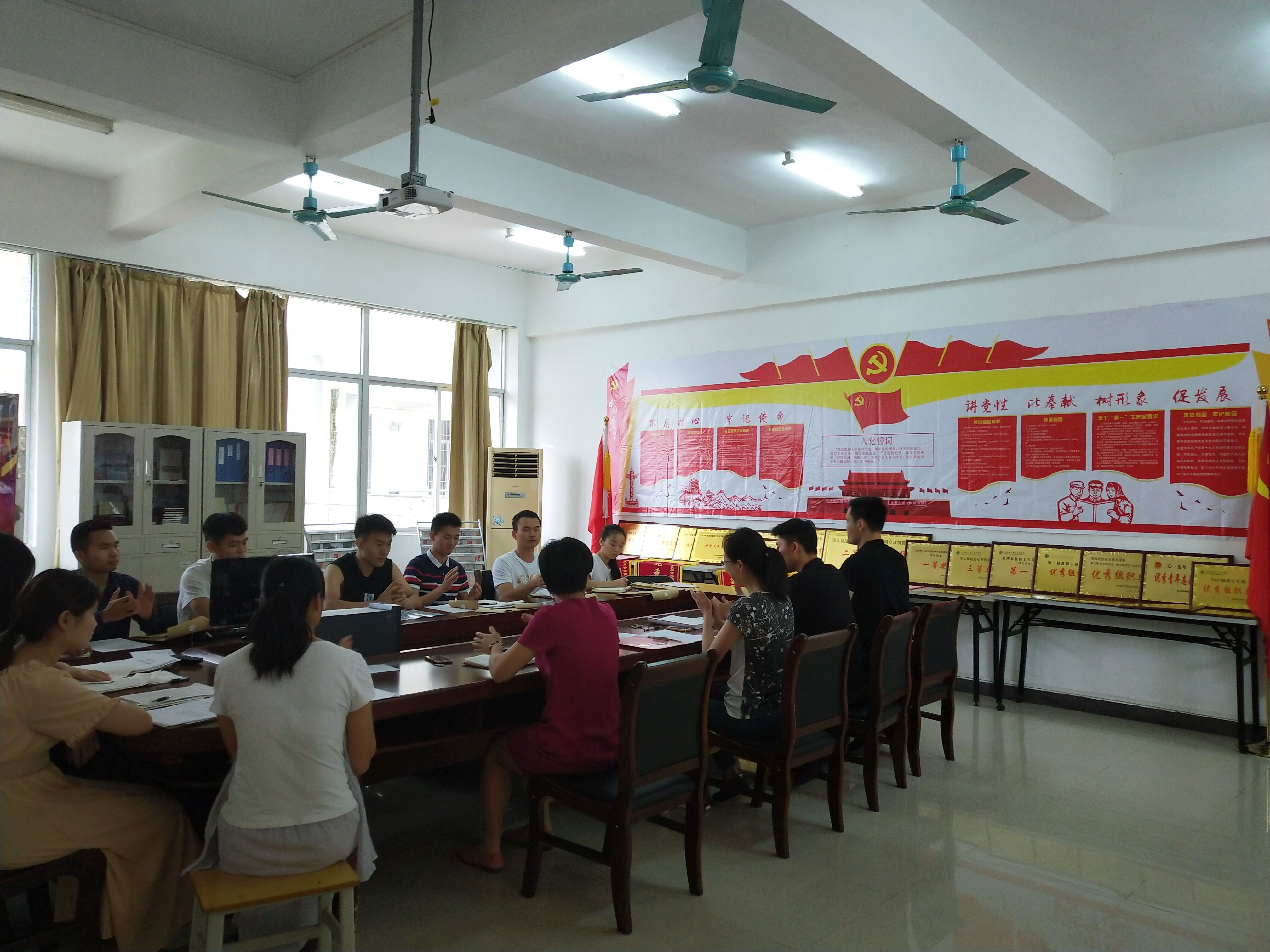 在2栋406召开预备党员转正会议,会议出席有亚芳书记,梁老师,代老师,唐老师以及全体预备党员在2栋406召开预备党员转正会议,会议出席有亚芳书记,梁老师,代老师,唐老师以及全体预备党员。