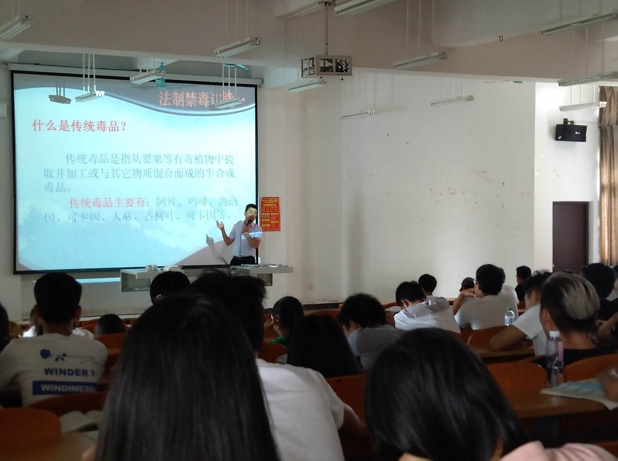 在课上,周恺老师为同学们讲解了毒品的定义,我国的禁毒历史,详细讲解了几个吸毒案例,在法律上对于吸毒贩毒的量刑,而后为同学们详细介绍了各种毒品的特征,作用,如冰毒,摇头丸,大麻等等,同时对吸毒的危害做出了更为细致的讲解,让同学们能够从心底,从精神上便开始远离毒品,杜绝毒品在同学们身边的出现。