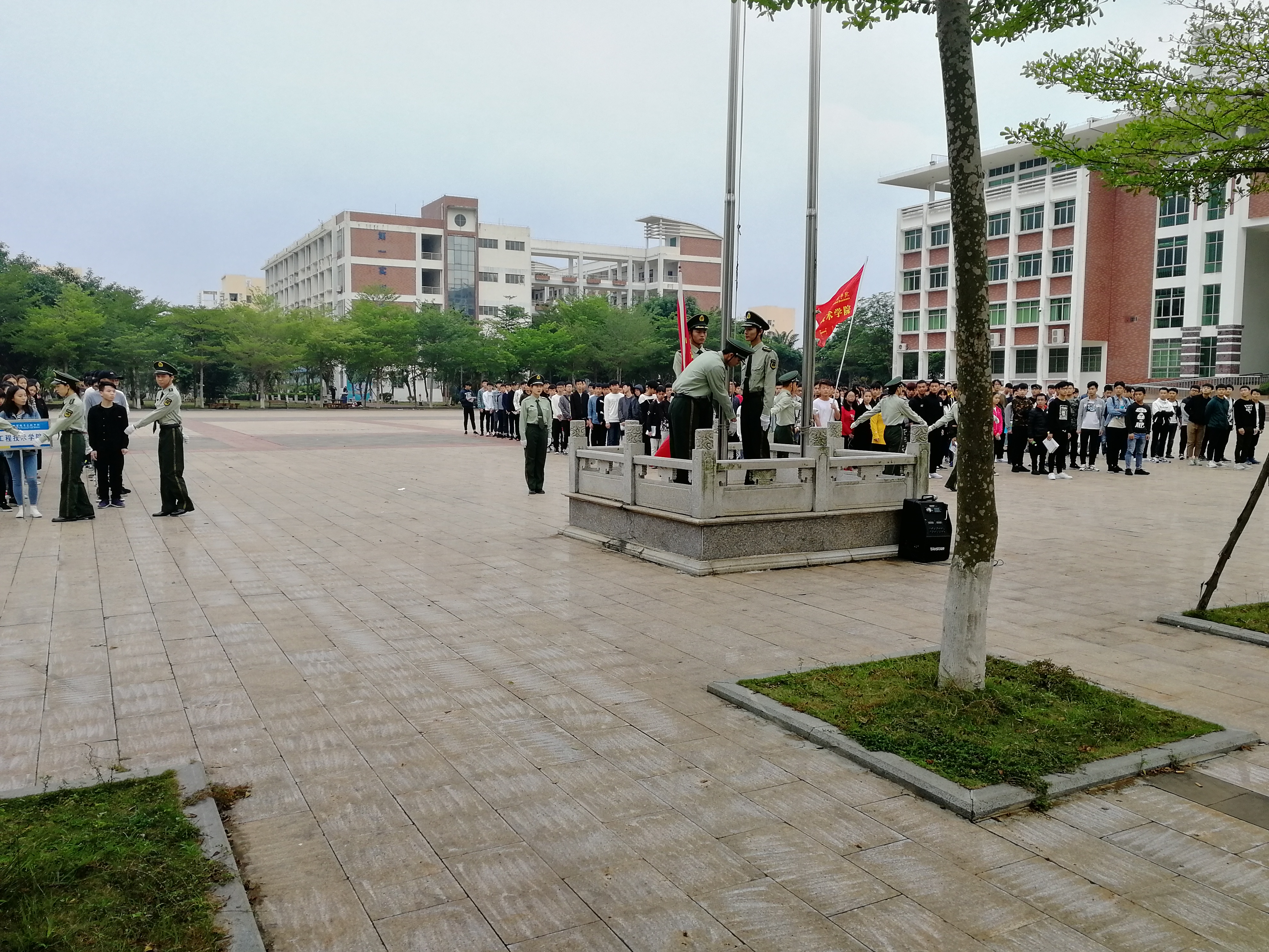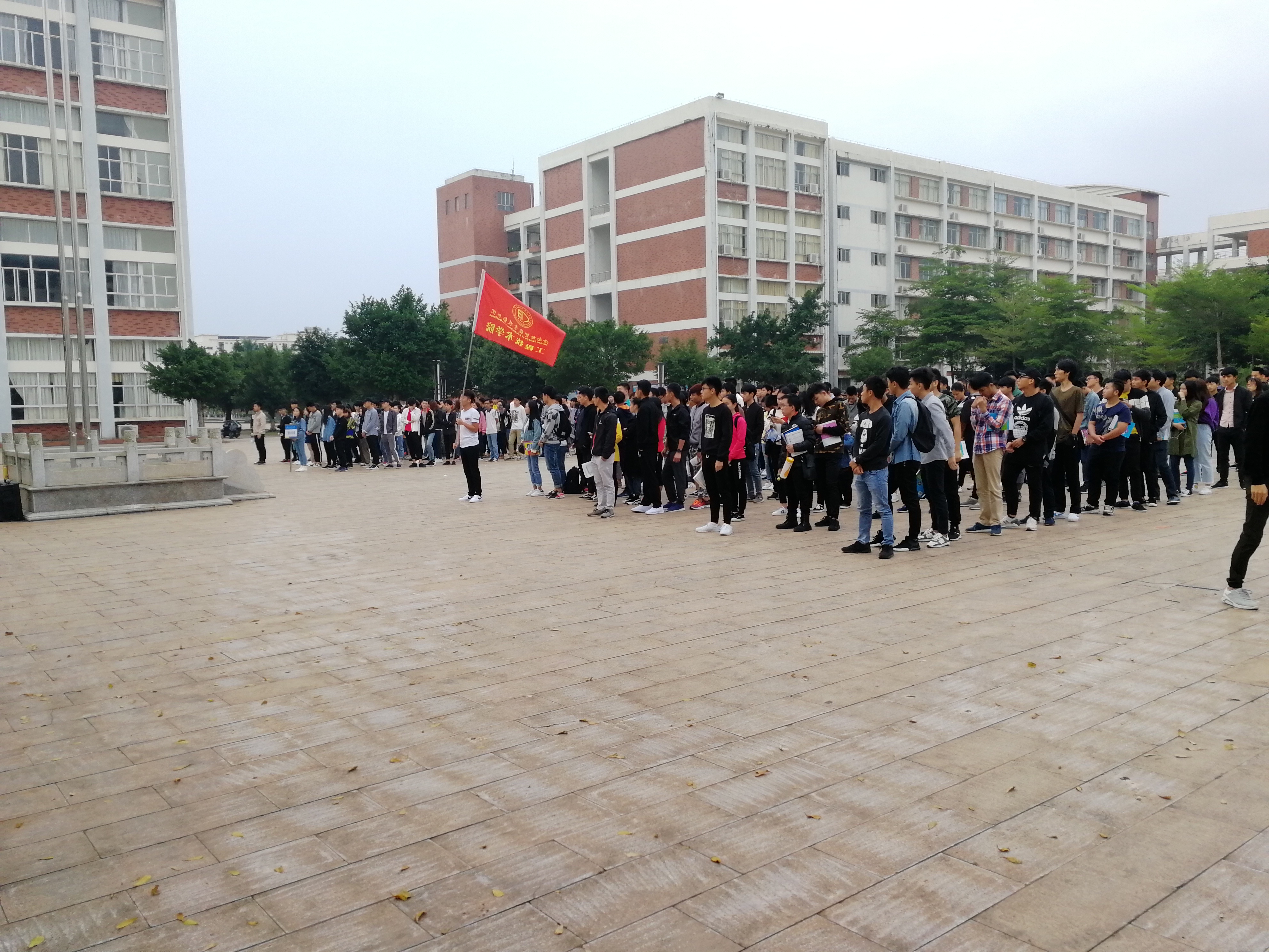 礼毕后,由团学青副主席蔡红艳发言,表示每天都是一个崭新的一天,有新的收获。都应该积极乐观的面对老员工活。不应该每天像条咸鱼一样躺在被窝里,不应该每天只有吃饭、打游戏。应该多花点时间看看书,锻炼身体等等。最后17级辅导员周恺老师进行了补充说明,特别强调了纪律的问题,并宣布了同学们的出勤情况。
