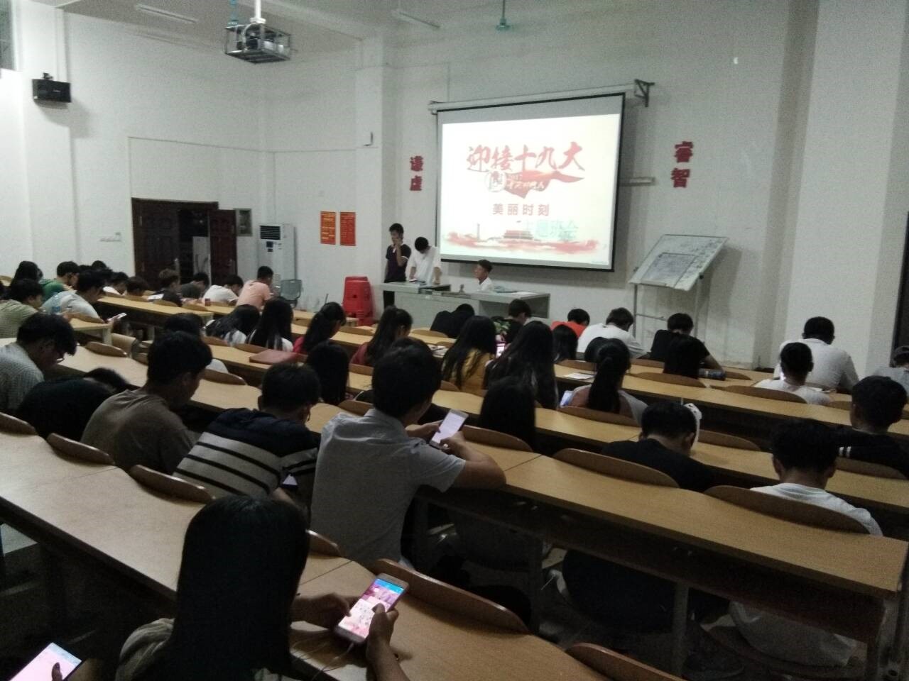 为了更好的宣传十九大的精神,深刻理解十九大精神的含义,同时庆祝十九大的胜利召开,在工程技术公司团总支的指导下,于10月24日各班班委在各自的班级举行了一场喜迎十九大的主题班会,各班级的同学们积极参与,各年级辅导员也在班会现场巡视,对班会内容,思想进行指导。