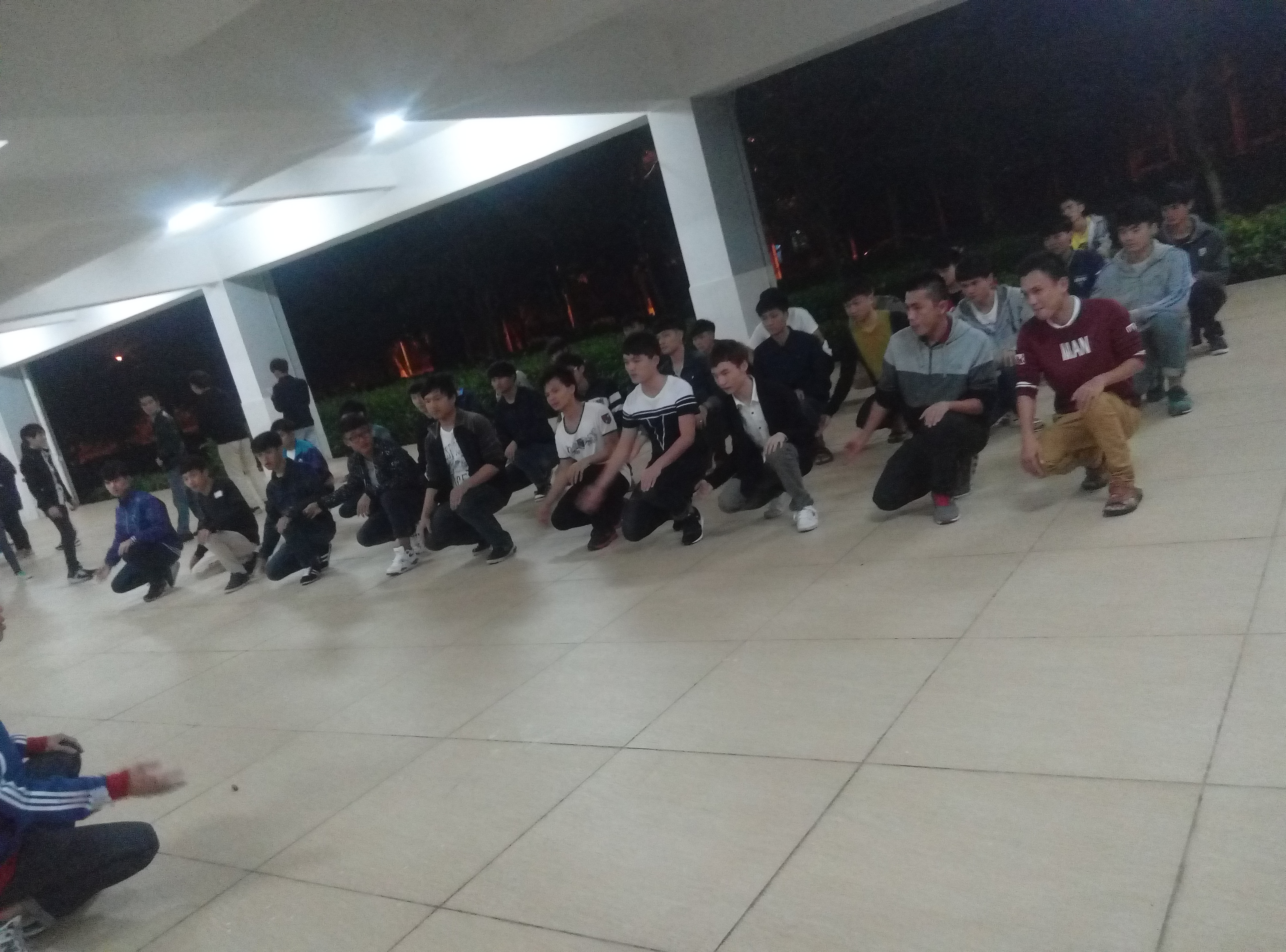 7:30分各班在班长的带领下到了指定位置训练礼仪操,有的班级在练手势礼、有的班级在练握手礼、有的班级学的比较快已经全部练完,现在对动作的规范性做强化训练。8点整,主席团各成员到达二栋楼下,开始一个班级一个班级的走访检查。首先让在训练的班级对这两周所学的礼仪操内容从头展示了一遍,主席团成员对班级所呈现的问题进行现场指导,并做示范为员工们演示。对于没练完的班级鼓励加劲,希望他们能尽快的学完礼仪操,然在进行细节的调制加强训练,不懂得动作要尽快提出来,学姐学长为他们答疑解惑。