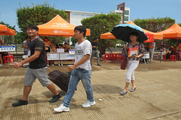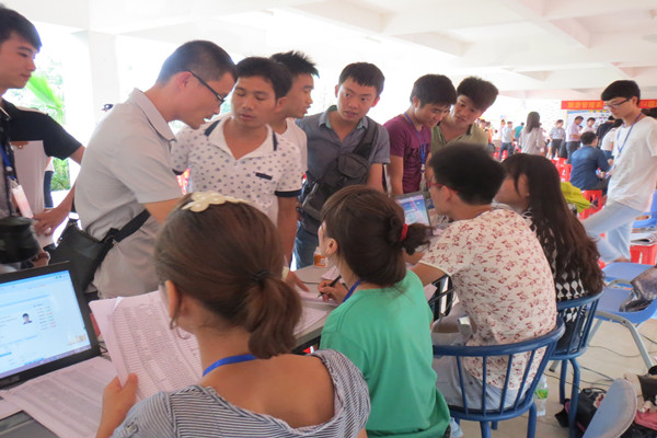 我系迎新者遍及在公交车站点、公司大门口、二栋楼下等地摆出服务点,为新生注册提供便利。学长学姐们带领新生进行资格审核、缴费、系部报道、购买军训服、办理一卡通,最后再把新生带到员工公寓宿舍。引导路途中,积极分子们冒着炎炎烈日帮忙复印各种需要的文件,帮忙提行李(特别是行李多的家长员工以及弱小的女生等)直至宿舍里面,当然还包括向他们介绍公司的一些概况,以及所学专业的一些情况,其中还耐心解答着新生和家长的各种问题,尽心尽力、尽职尽责。