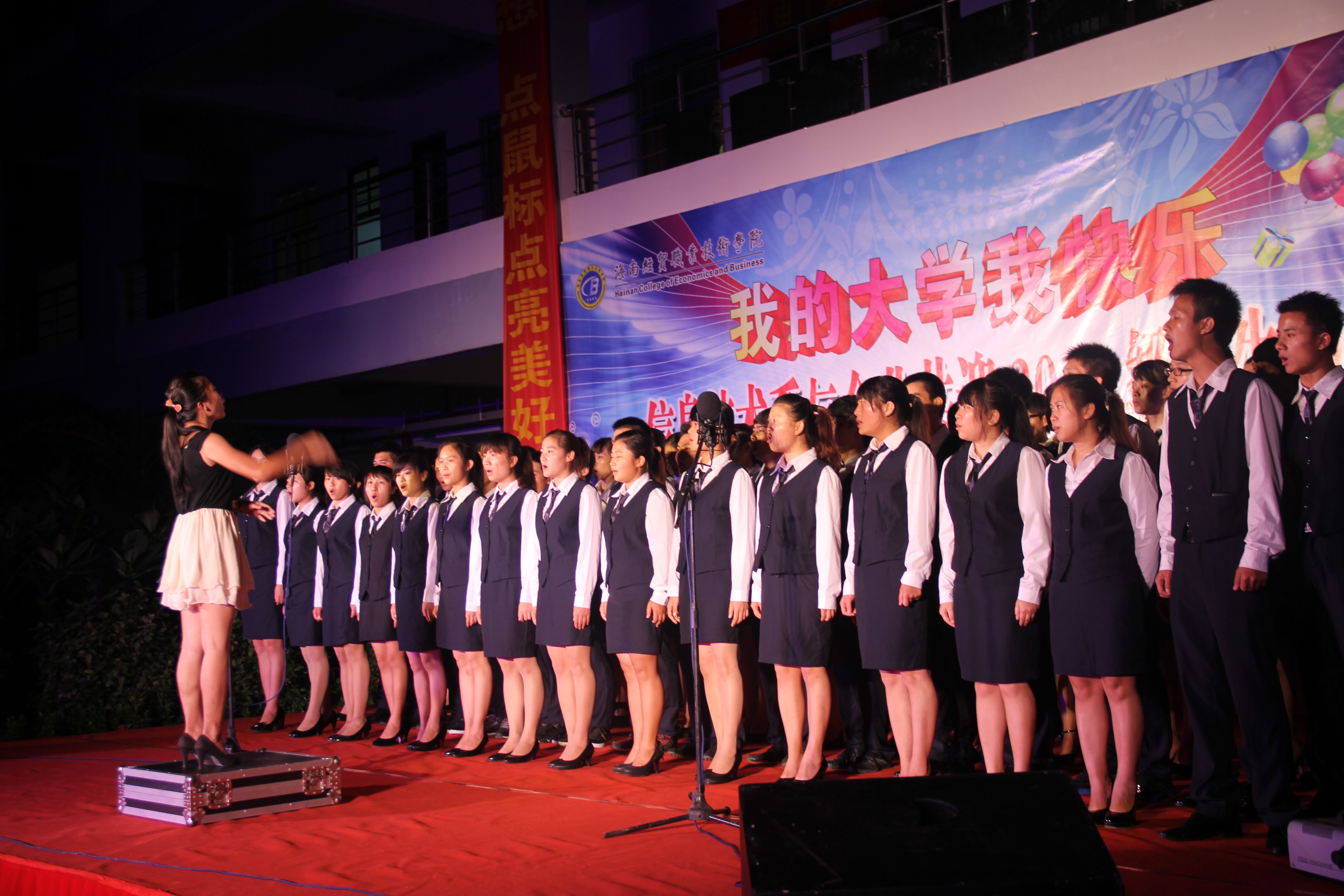 (信息技术系宣教部报道)9月27日晚8点整,信息技术系在二栋教学楼楼下以“我的大学我快乐”为主题举办信息技术系与企业共迎2013级新生晚会,特约嘉宾有:我系党总支书记陈继敏,系主任李丽蓉,系副主任王凡帆、计算机网络技术专业负责人王岩、电子商务专业负责人单继周、计算机多媒体技术专业负责人李兵、员工党支部书记陈亚芳、辅导员陈青云、龙腾老师,另外还有我系各个专业的老师出席晚会现场。出席本次迎新晚会的企业有中国联通海南分公司、杭州华三科技有限公司、海南安艾艾迪有限公司、海南莱福科技公司、海南英立科技有限公司。