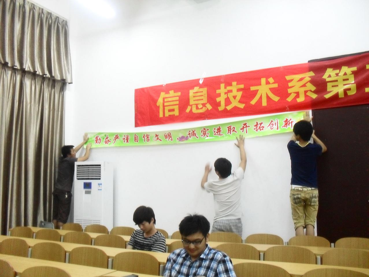 我系于5月下旬-6月中旬开展为期半个月的员工环境创建活动,每个班级晚自习室,宿舍区域等场地进行了布置,每间教室不仅贴有班级的各类激励标语,人生座右铭等,还有名人的成功事迹,如马云,马化腾等,更有名人语录。例如“为学之道,莫先于穷理;穷理之要,必先于读书——宋(朱熹)”,来鼓励我们奋发图强。建设文化班级、文明宿舍,再一次凝聚了各班整体的力量,而所营造的氛围则用来提醒我们正是“恰同学少年,风华正茂”。