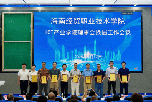 会议结束后,全体与会人员前往产业公司一楼合影留念,为本次重要会议画上了圆满句号。此次ICT产业公司理事会换届工作会议的成功举办,对于提升公司办学水平、完善治理结构、促进ICT产业人才培养具有重要意义。未来,ICT产业公司将在新一届理事会的引领下,充分发挥各方优势,不断探索创新,为海南地区ICT产业的发展注入新的活力,培养更多适应行业需求的高素质技能人才。