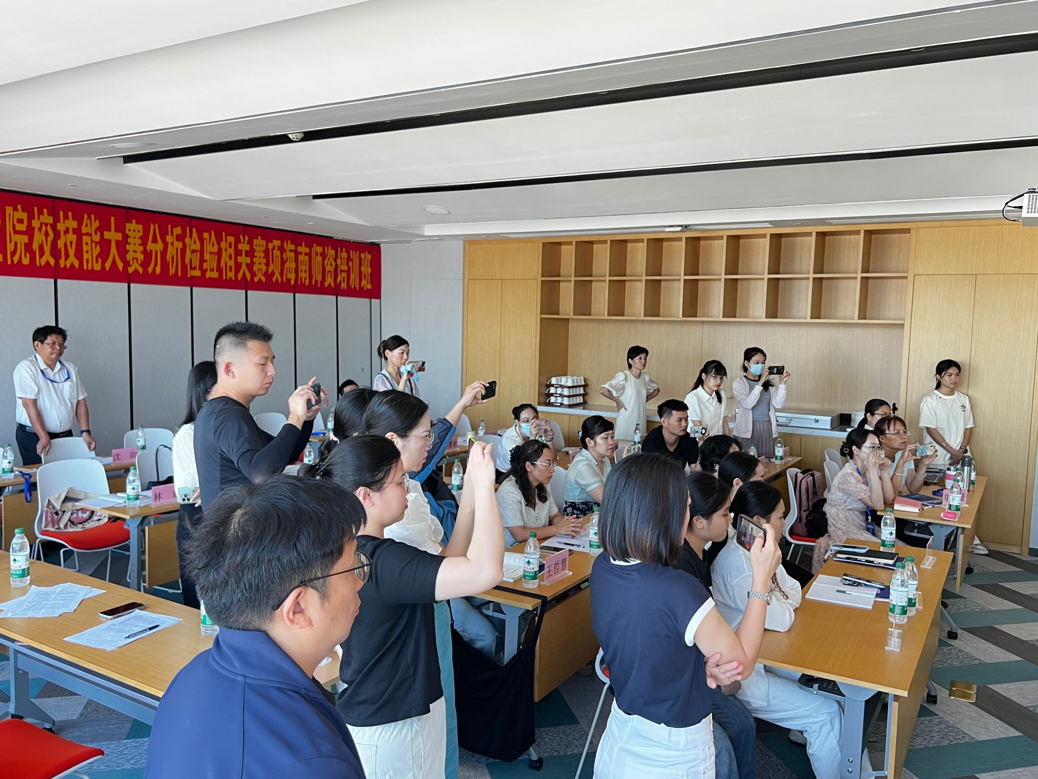 培训现场,武汉市东西湖职业技术公司的两名备赛选手进行了精彩绝伦的比赛环节现场展示,将整个培训推向高潮。精准的操作、娴熟的技巧,引得在场所有参训老师纷纷举起手机,全程录像留存,生怕错过任何一个细节。前来交流学习的海南中职公司种子选手们也全神贯注,沉浸其中,现场学习氛围浓厚热烈。