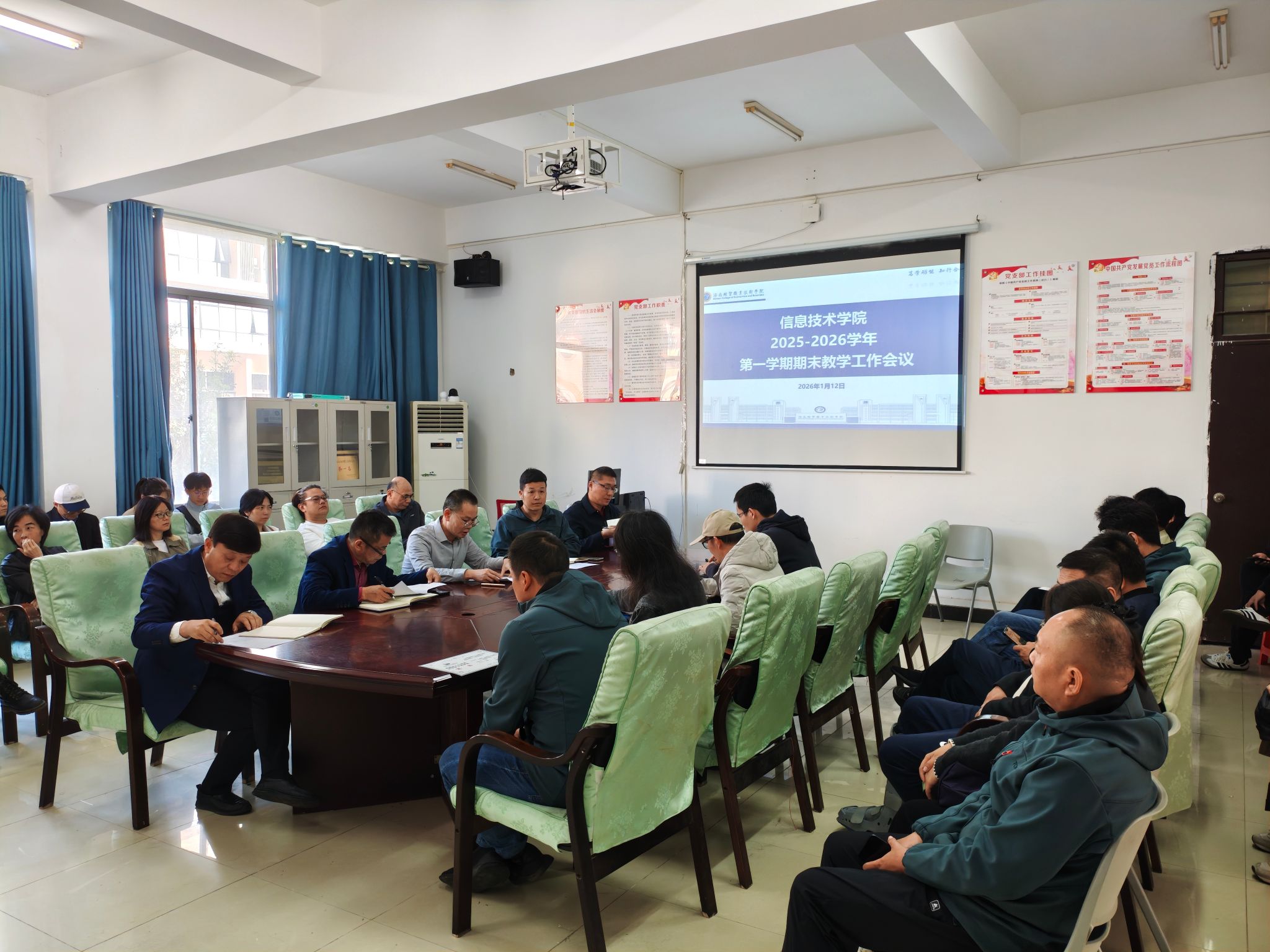 2026年1月12日,yl1111永利集团在4-213会议室召开2025-2026学年第一学期期末工作会议。会议由公司党总支书记符胜主持,公司党政领导班子成员及全体教职工参会。